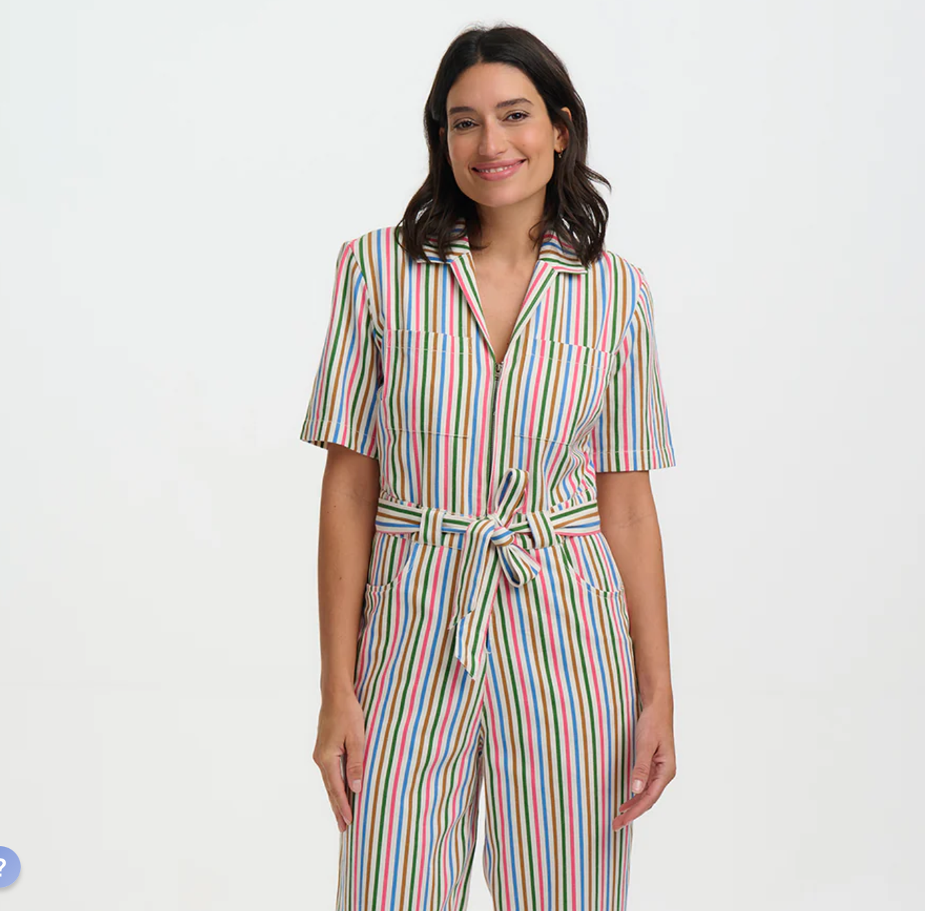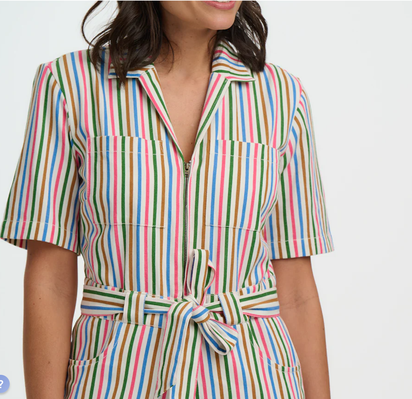 Meet the Meredith Boilersuit, your new go-to for effortless cool and everyday ease. Cut in a relaxed boilersuit silhouette, Meredith features an open shirt collar, a functional zip front opening, short sleeves, and a self-fabric belt to cinch the waist for a flattering shape. Designed in a timeless, colourful pinstripe, this versatile piece strikes the perfect balance between smart and casual. Whether styled with trainers for laid-back vibes or dressed up with boots, the Meredith Boilersuit is a must-have wardrobe hero.
