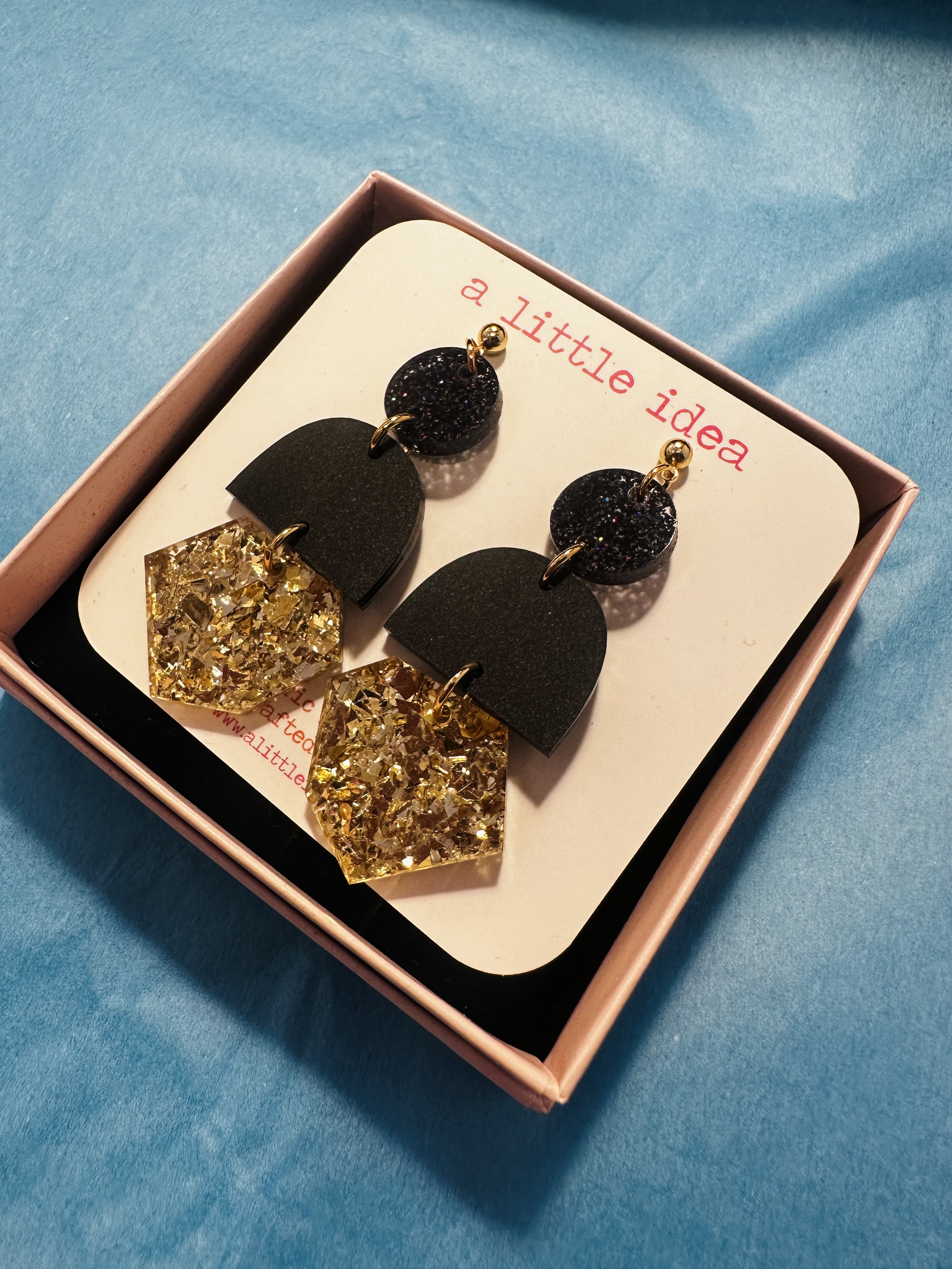 These danglys are made up of three acrylic layers, including frosted, mirrored, glossy and sparkle acrylics.