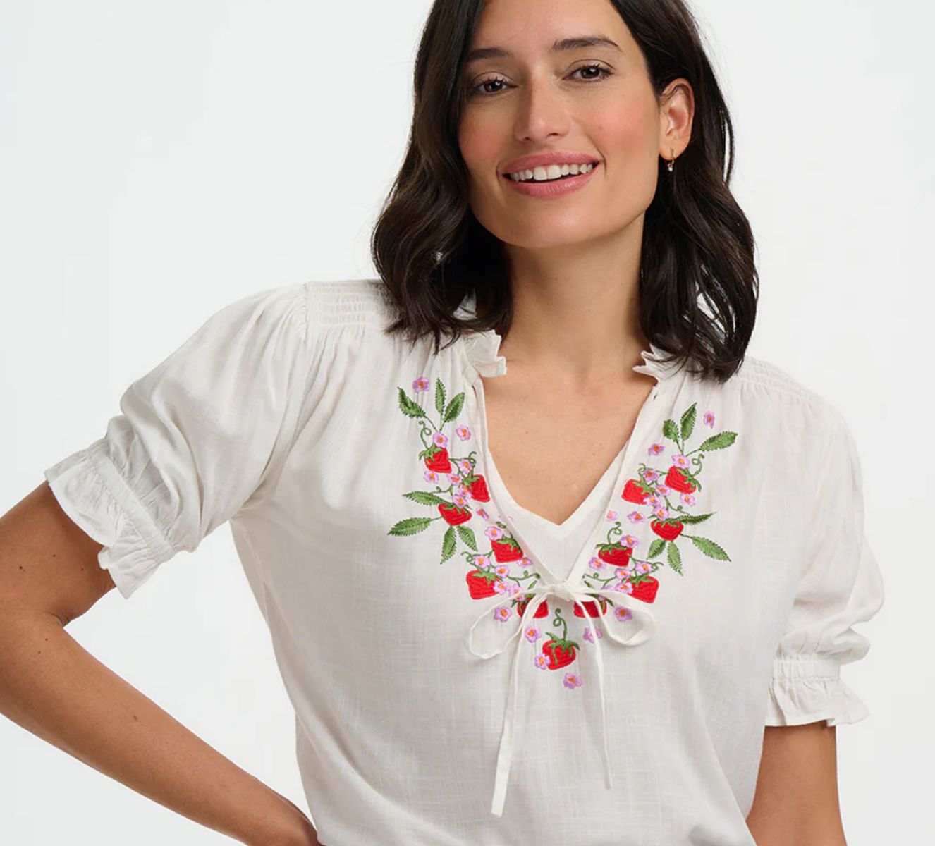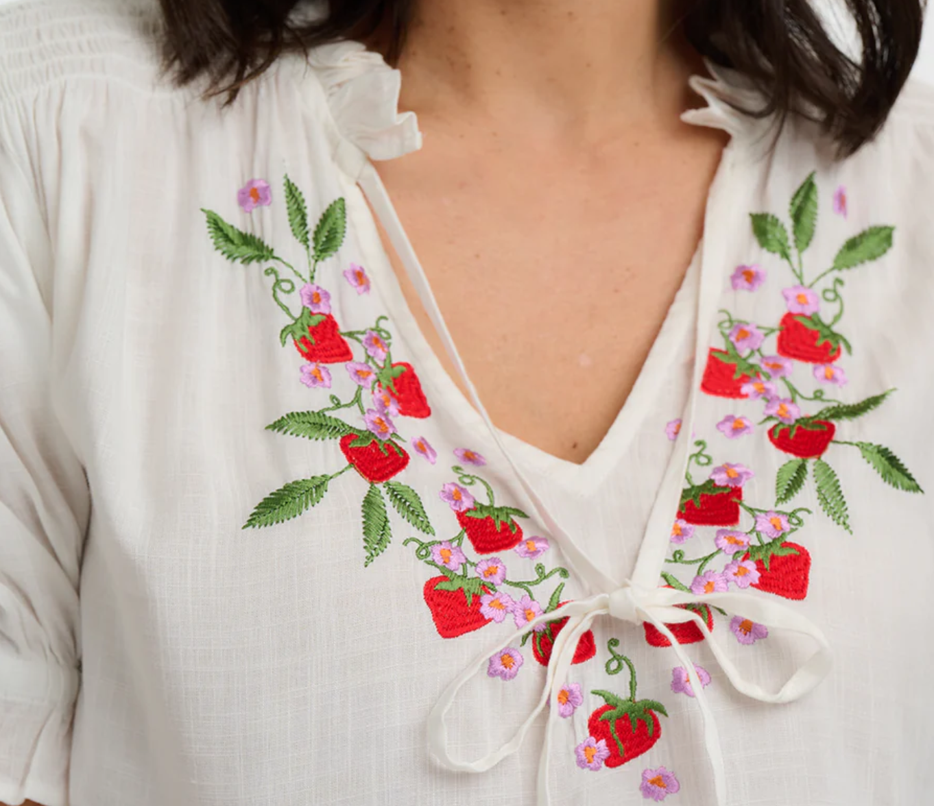 Angelique Shirred Top - Off White, Wild Strawberry