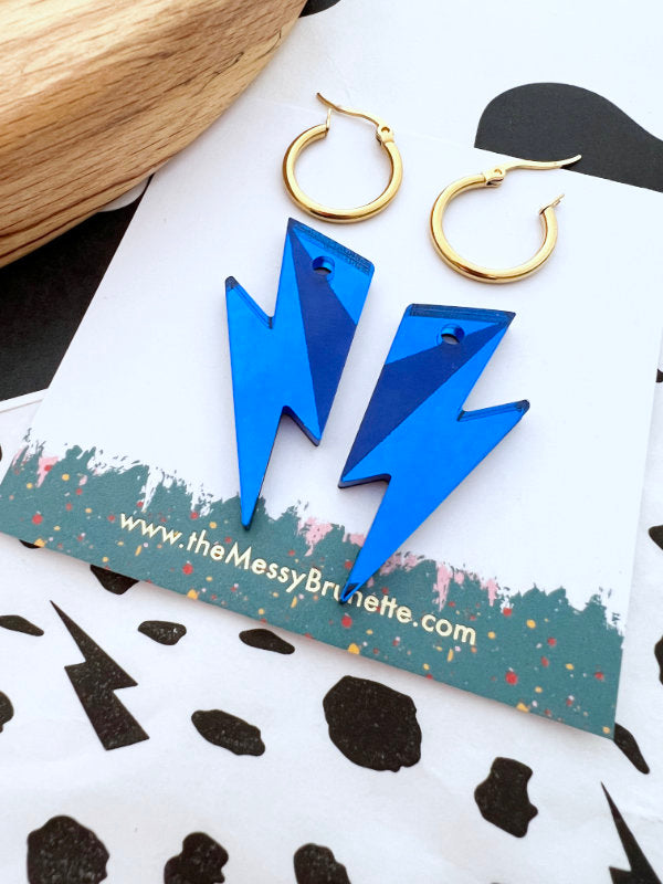 Bolt Hoop Earrings, blue by Messy Brunette