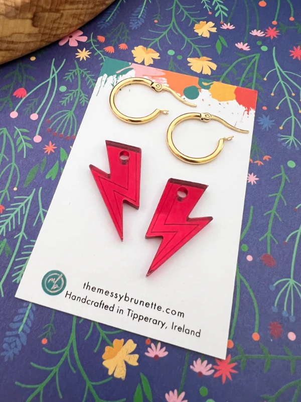 Maura is a Tipperary based designer & maker established in 2013. Maura's jewellery is laser cut from FSC certified European plywood & each piece she then hand paints & assembled. She uses eco friendly materials where possible, from the resin to the glitter to the packaging, to play our part in keeping the environment in good order. Her pieces are bright and colourful, like little pieces of wearable art & hopefully something to make you smile! She uses a combination of modern techniques, like UV printing and old traditional craft methods like decoupage in the pieces.