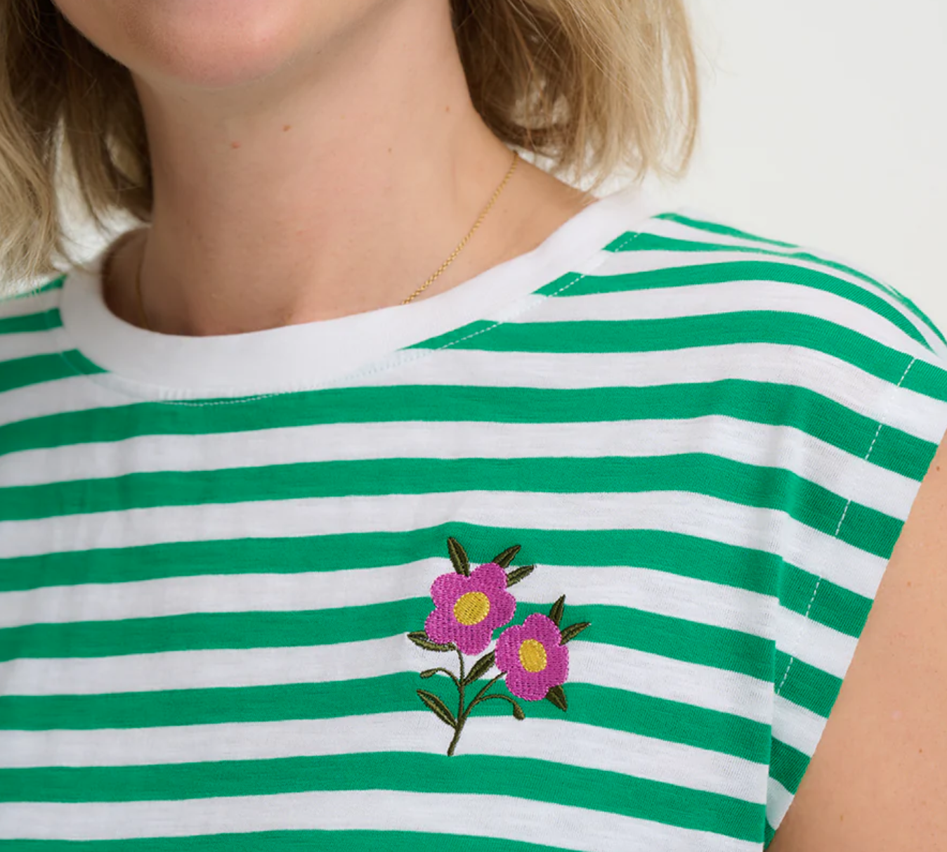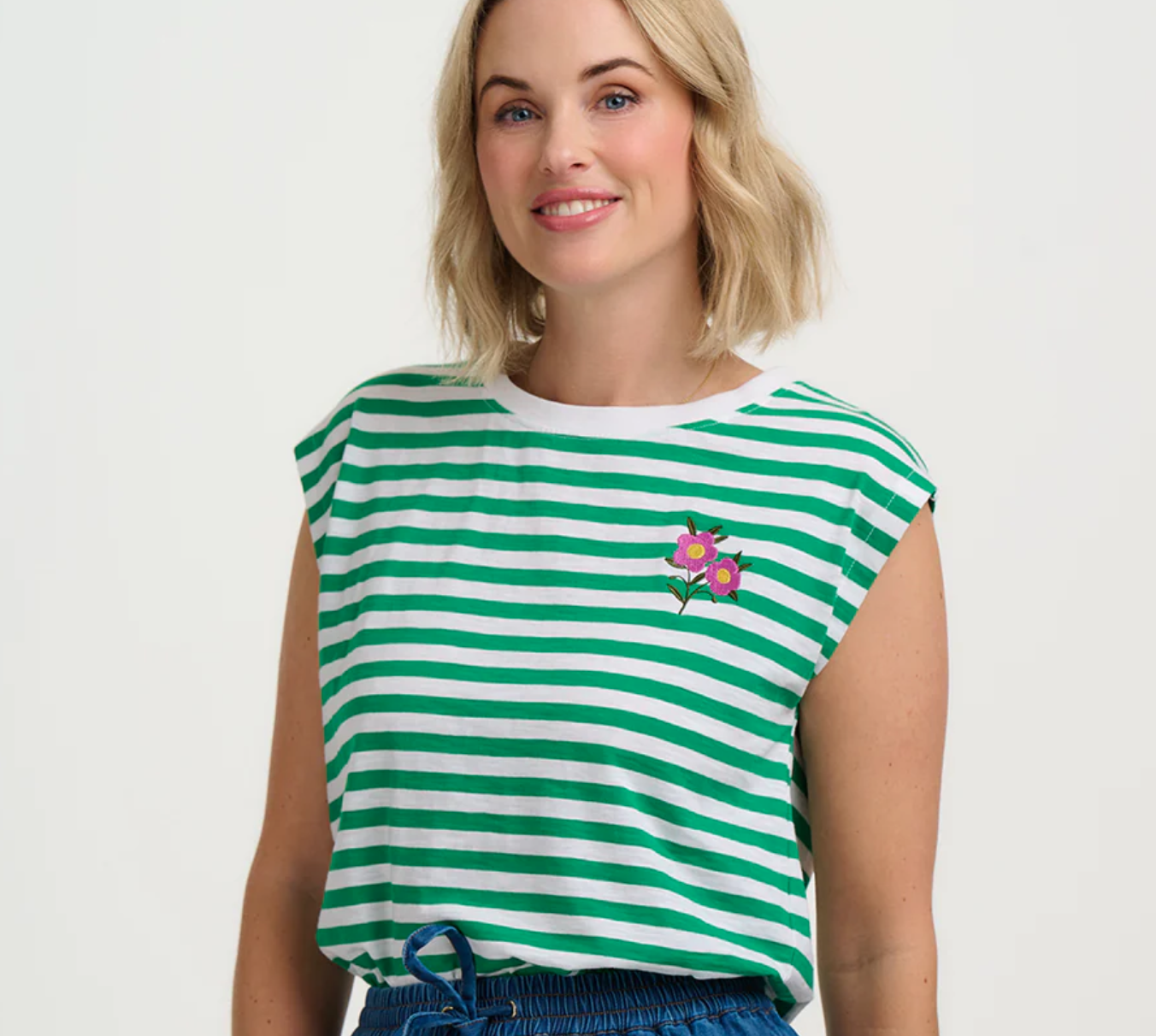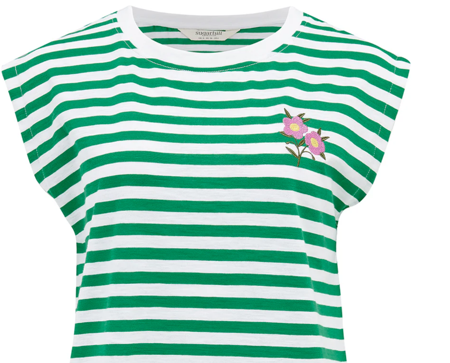 Chrissy Relaxed Tank T-Shirt by Sugarhill- White/Green Stripe, Floral Sprig