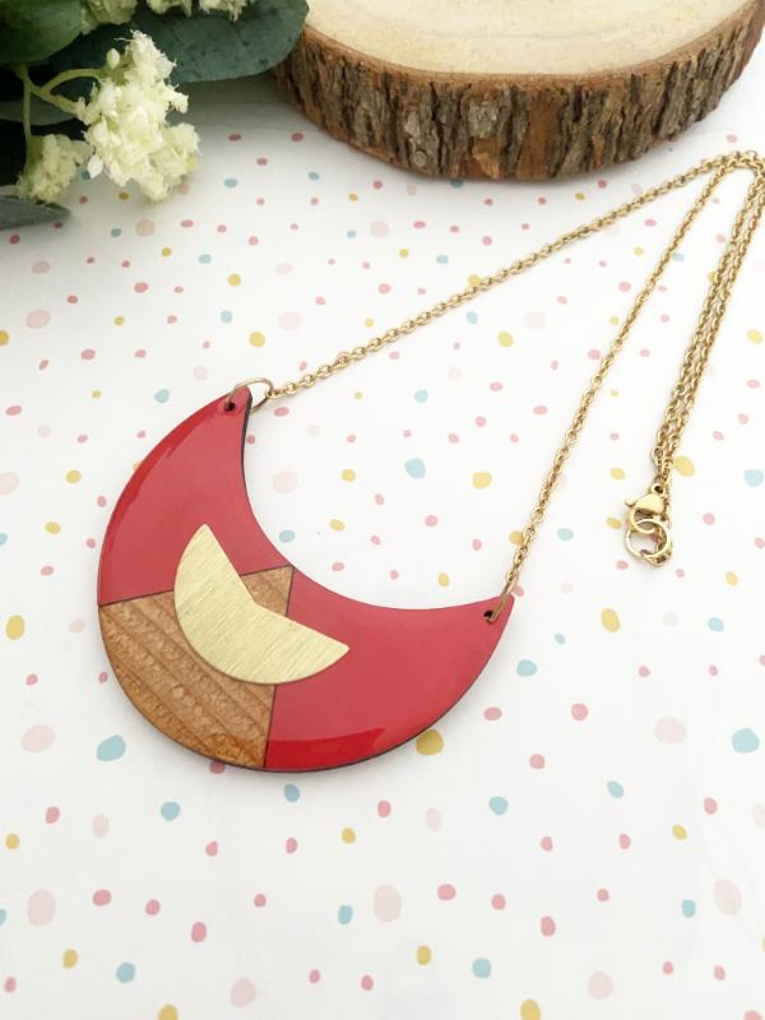 These colour block necklaces are laser cut from some beautiful cherry wood. Each piece is hand painted in some lovely colours of navy, coral blush & watermelon red. Each pieces has a brass shaped added to finish off the geometric design. Necklaces in this range all come with a stainless steel gold chain, 18inches in length.