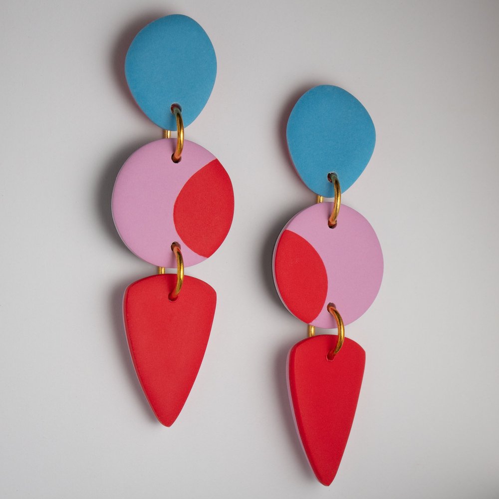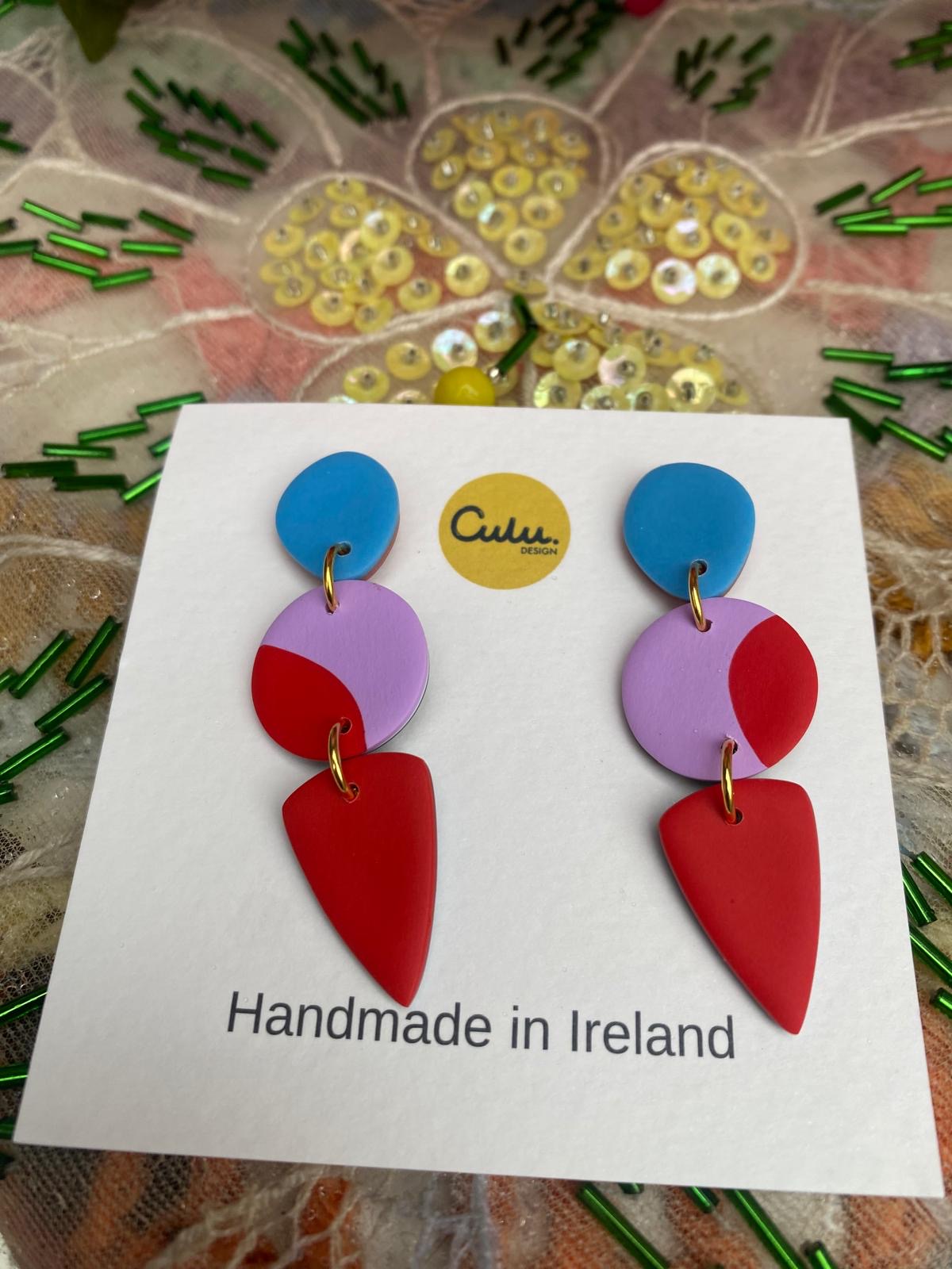 Culu Design is a colourful and eclectic collection of modern clay jewellery, designed and handcrafted in Ireland. Each piece is made by Louise O’Hara in her studio in Co. Wicklow, Ireland. Crafted using polymer clay, stainless steel, 925 sterling silver, and occasionally additional elements such as metal leaf, resin and shimmery pigments.