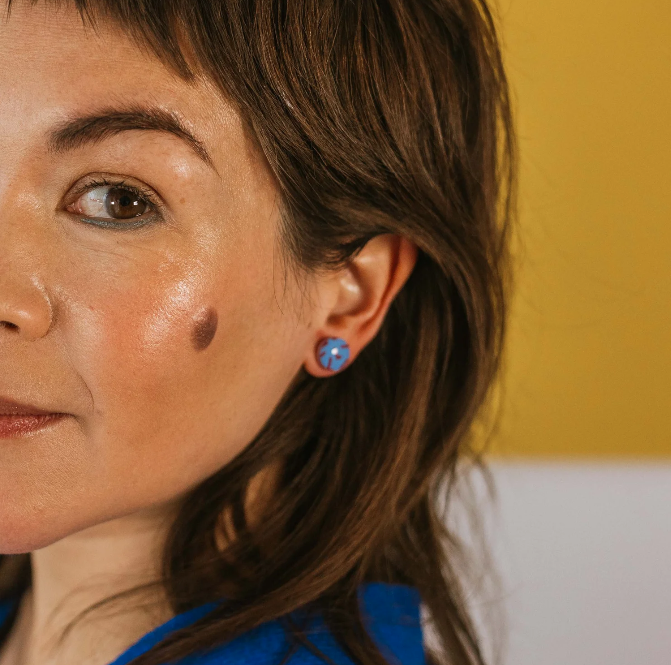 GLAM in Blue Index is small, graphic, and quietly bold. A glossy sky-blue base scattered with deep red gives these studs a playful, modern edge. Easy to wear, easy to love. They add just enough interest without stealing the show. Approx. 1 cm and finished with hypoallergenic stainless-steel posts.