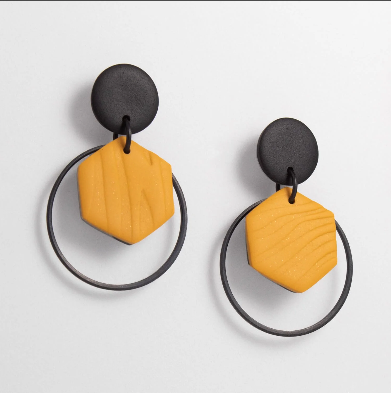 Meet Hex in Caramel — bold geometry meets warm simplicity. These striking earrings feature soft hexagonal drops in rich caramel yellow, paired with deep matte black tops and sleek black hoops for a modern edge. They’re effortlessly cool and instantly uplifting — the kind of pair that makes even the simplest outfit feel considered. Approx. 4.5cm long and finished with hypoallergenic stainless steel posts.