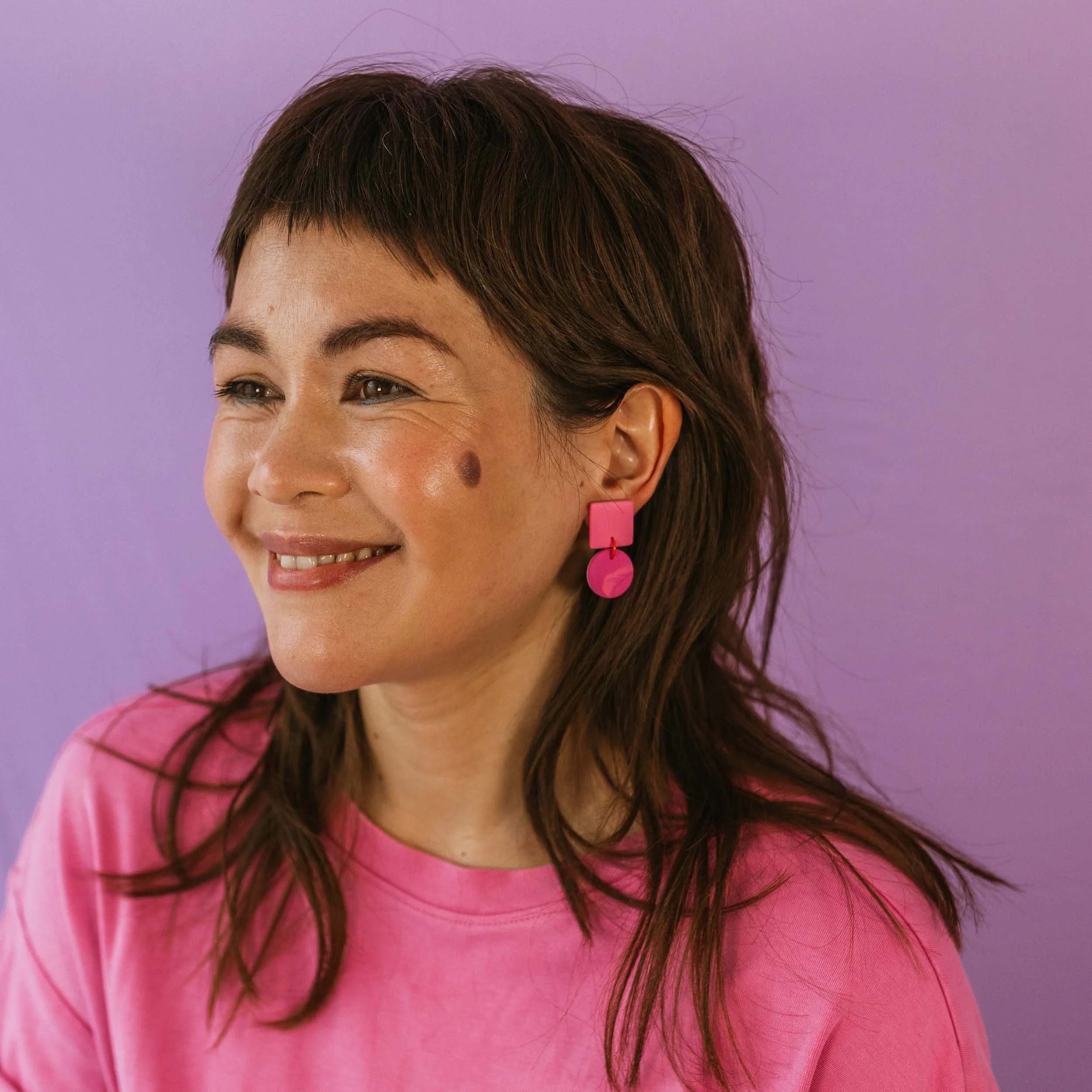Hiro is small but full of personality. A soft pink square sits above a marbled pink drop, with subtle tonal swirls that make every pair completely unique. Playful, feminine, and easy to wear, these are perfect when you want a pop of colour without going full statement. Approx. 3.5cm long and finished with hypoallergenic stainless-steel posts.