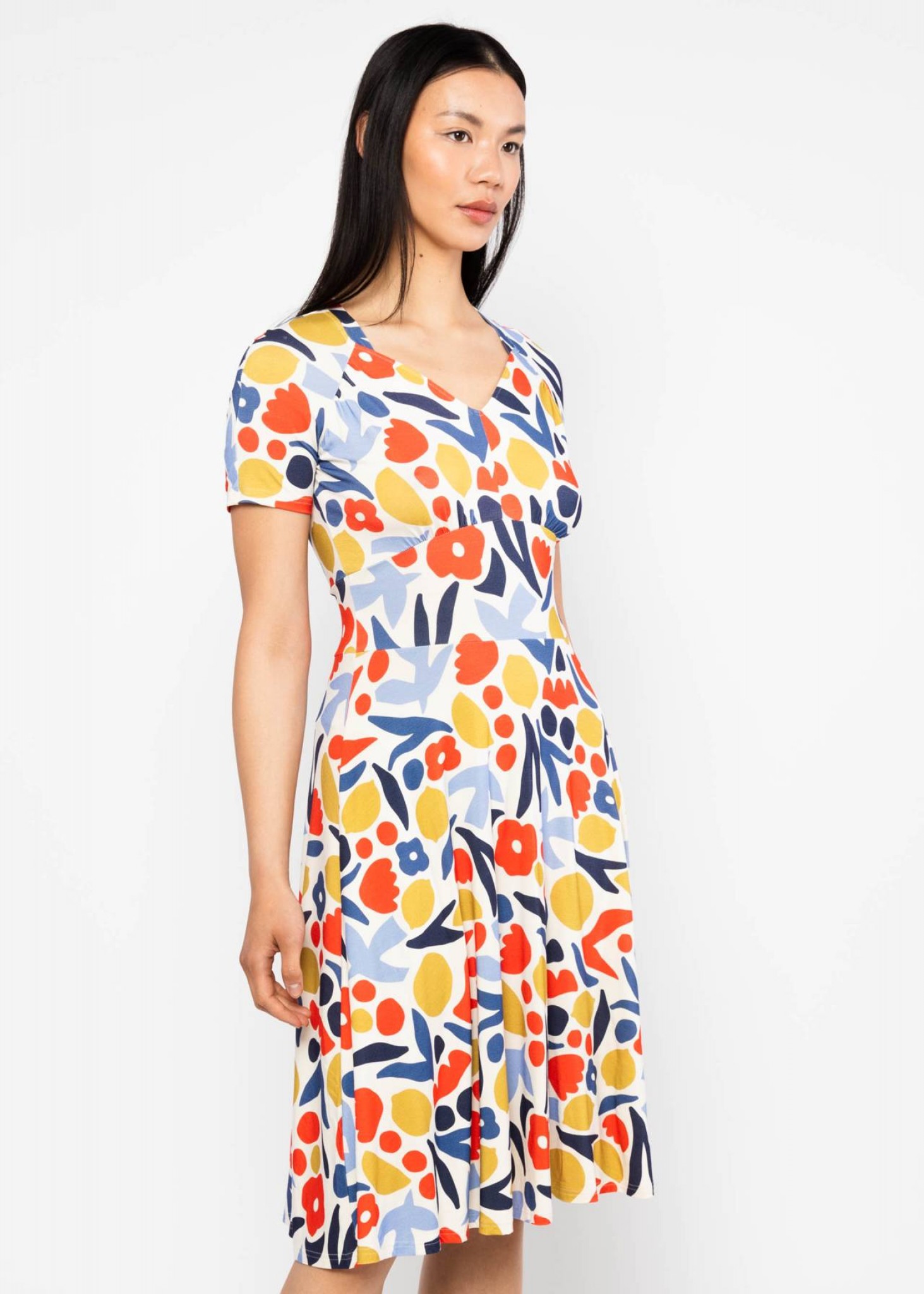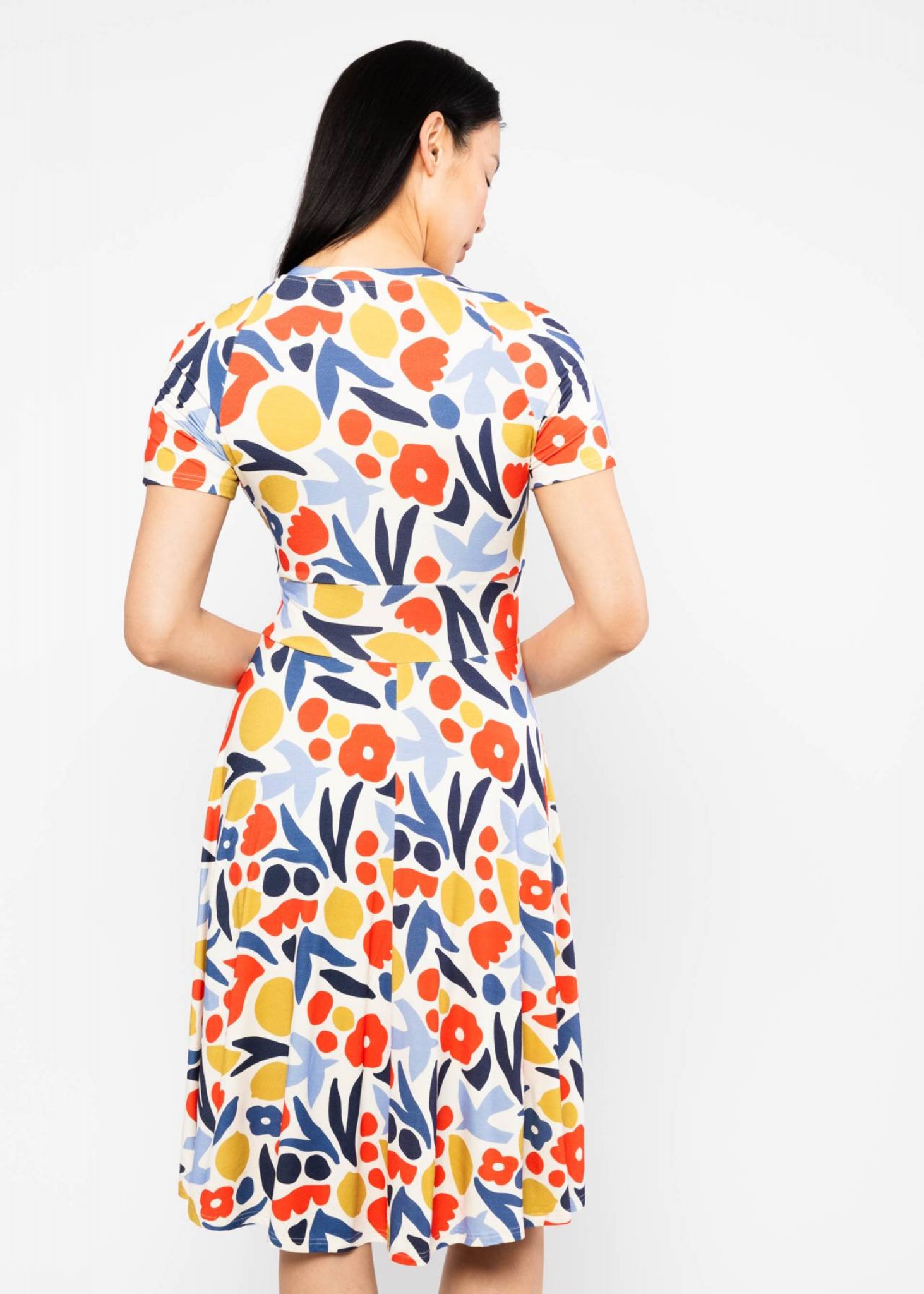 A neatly finished waistband at the natural waist creates a flattering shape, complemented by raglan sleeves and delicate gathered details for a charming finish. A comfortable, effortless dress designed to move beautifully with you throughout the day.