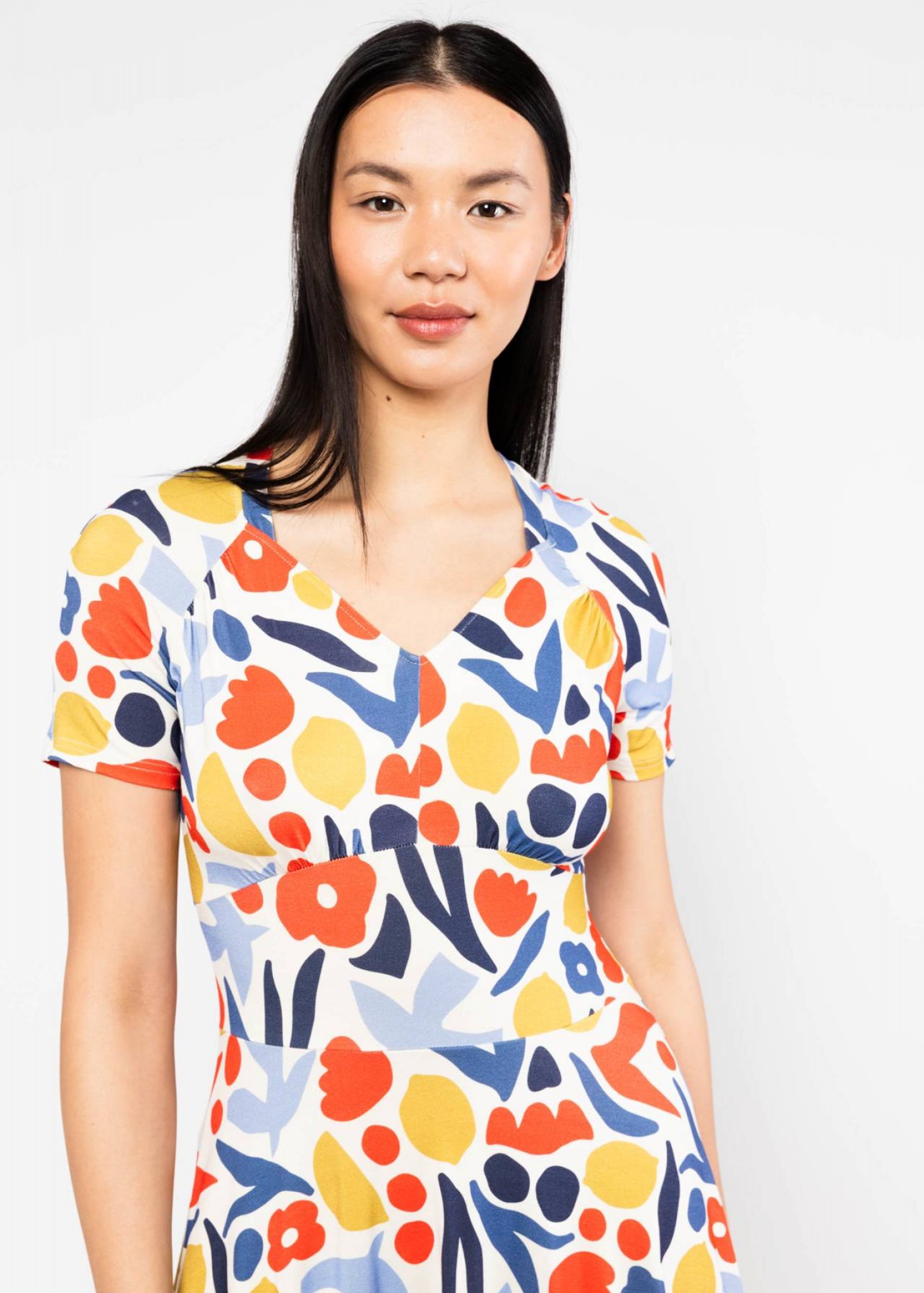 A light and easy everyday favourite: This soft and fluid jersey dress made from sustainable LENZING™ ECOVERO™ viscose offers a wonderfully smooth and breathable feel. The feminine sweetheart neckline highlights the décolleté, while the short sleeves and knee-length silhouette ensure relaxed wearability.