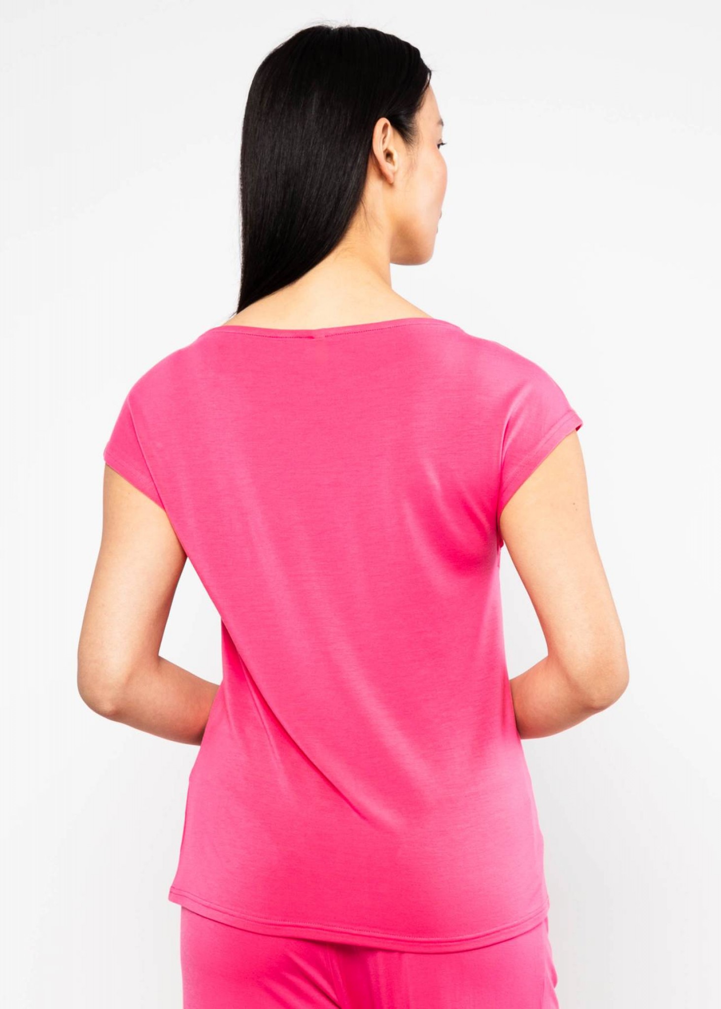 Light, soft, and endlessly versatile: this relaxed top made from fluid LENZING™ ECOVERO™ viscose jersey with a touch of stretch is an easy everyday essential. The wide round neckline with a fine trim and the dropped shoulders give it a feminine, modern look.
