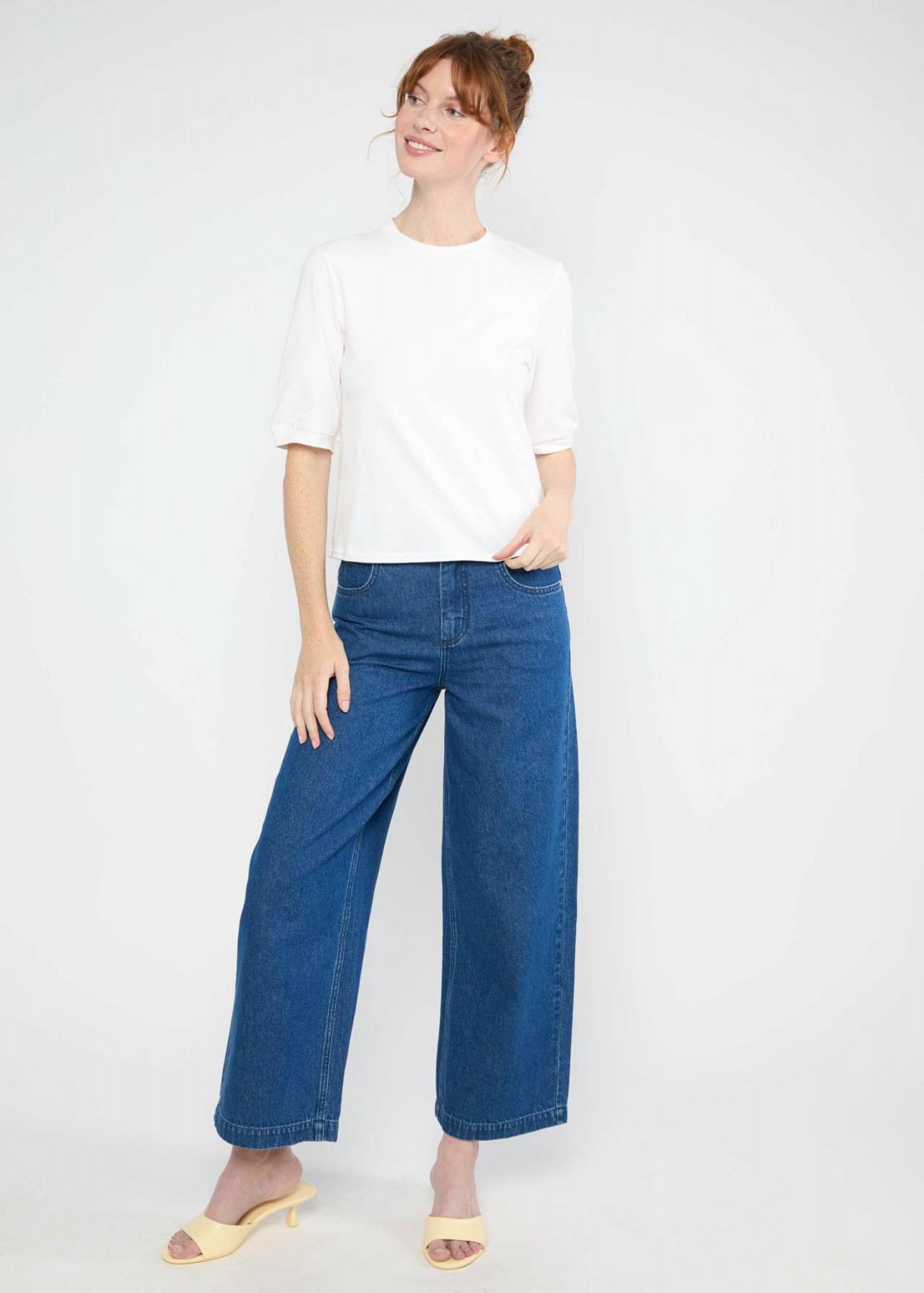 Clean, soft, and versatile: this GOTS-certified top made from smooth organic cotton jersey with a touch of stretch is your effortless go-to for every day. The half sleeves with a subtle puff shape add a feminine twist to the minimal design, while the relaxed, slightly cropped fit ensures easy comfort.