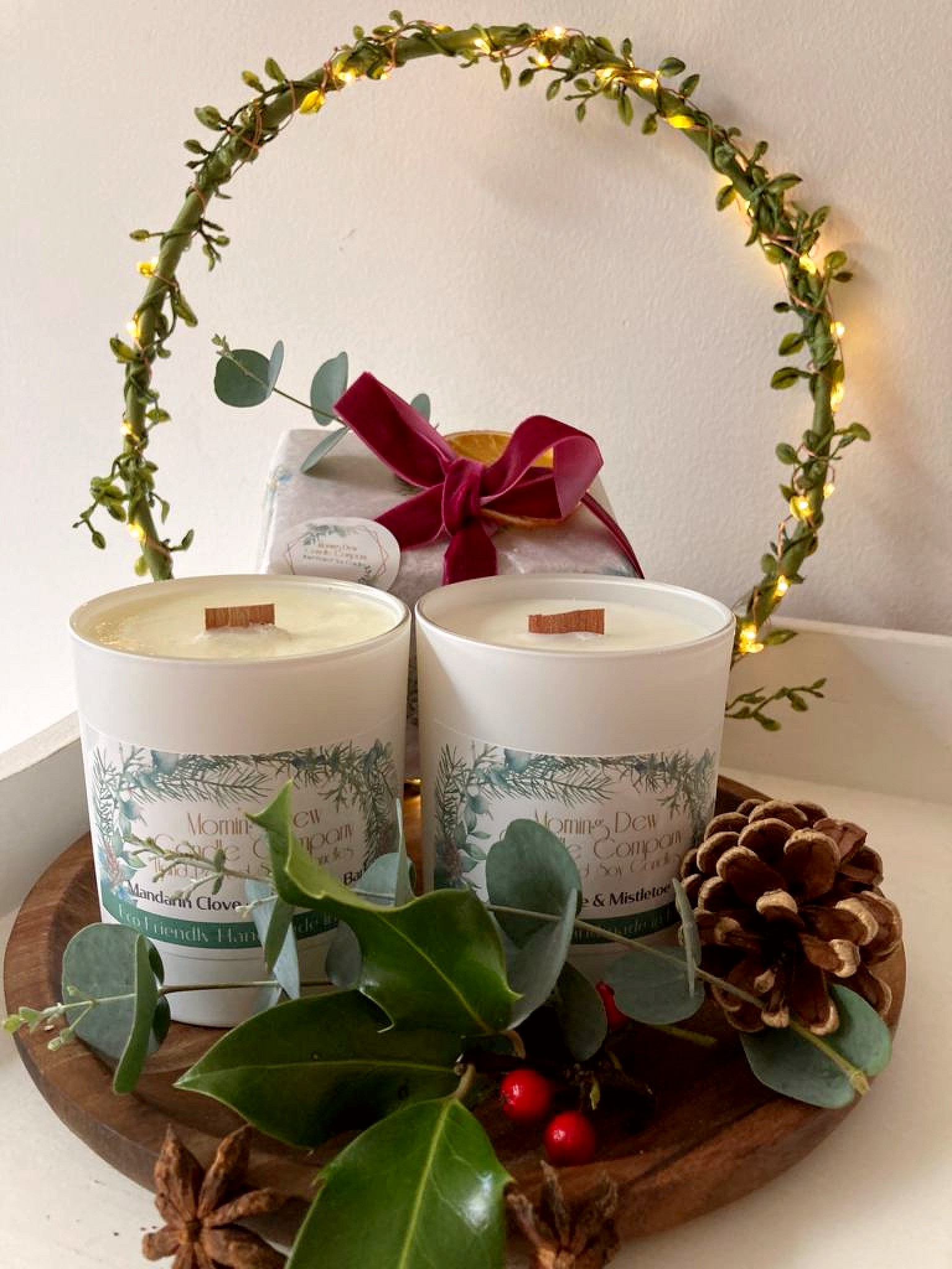 Morning Dew candles are hand poured by my Pal Fionnuala in Blackrock, Dublin. They are elegant and rich - 100% natural eco friendly soy wax candles. Soy wax is long burning, vegan friendly, natural and non- toxic completely carbon neutral, kind to you and the environment. Only the finest pure and premium oils are used. These candles have none of the nastly stuff like paraben or phalate!