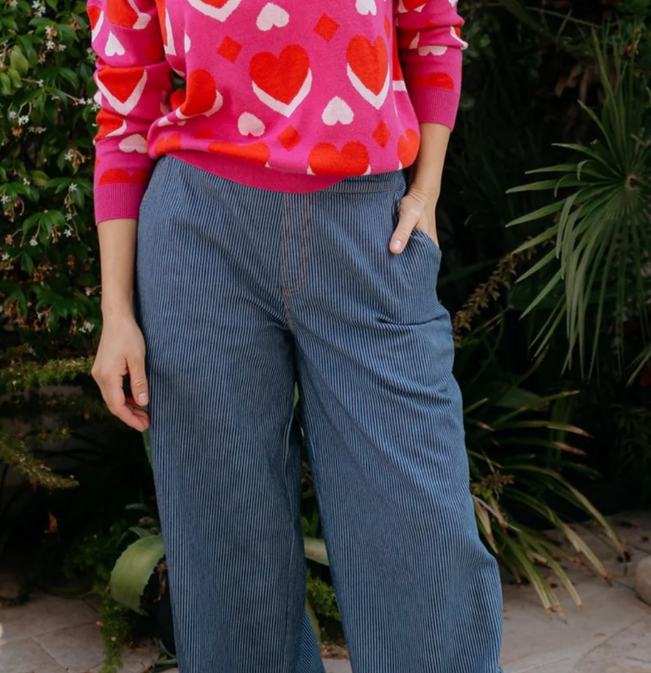The Fifi Trousers are a comfortable, everyday essential with a relaxed, modern feel. Made from soft cotton, these trousers feature a flattering wide-leg shape and a subtle blue pinstripe design for an easy, laid-back look. Designed with practical side pockets and a comfortable fit, they’re perfect for styling with colourful knits, simple tees or casual layers for effortless everyday wear.