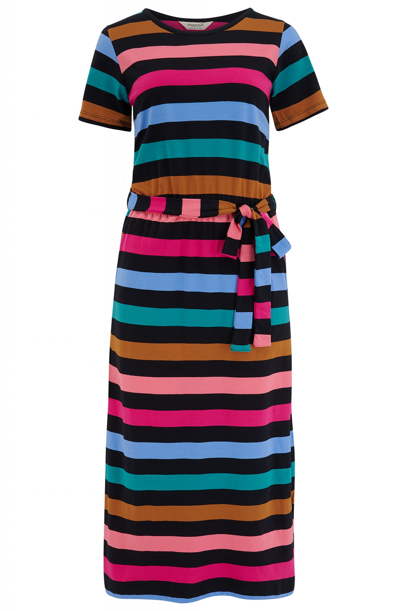 Pre Order * Flissy Jersey Midi Dress- Black/Multi, Alternating Stripes by Sugarhill