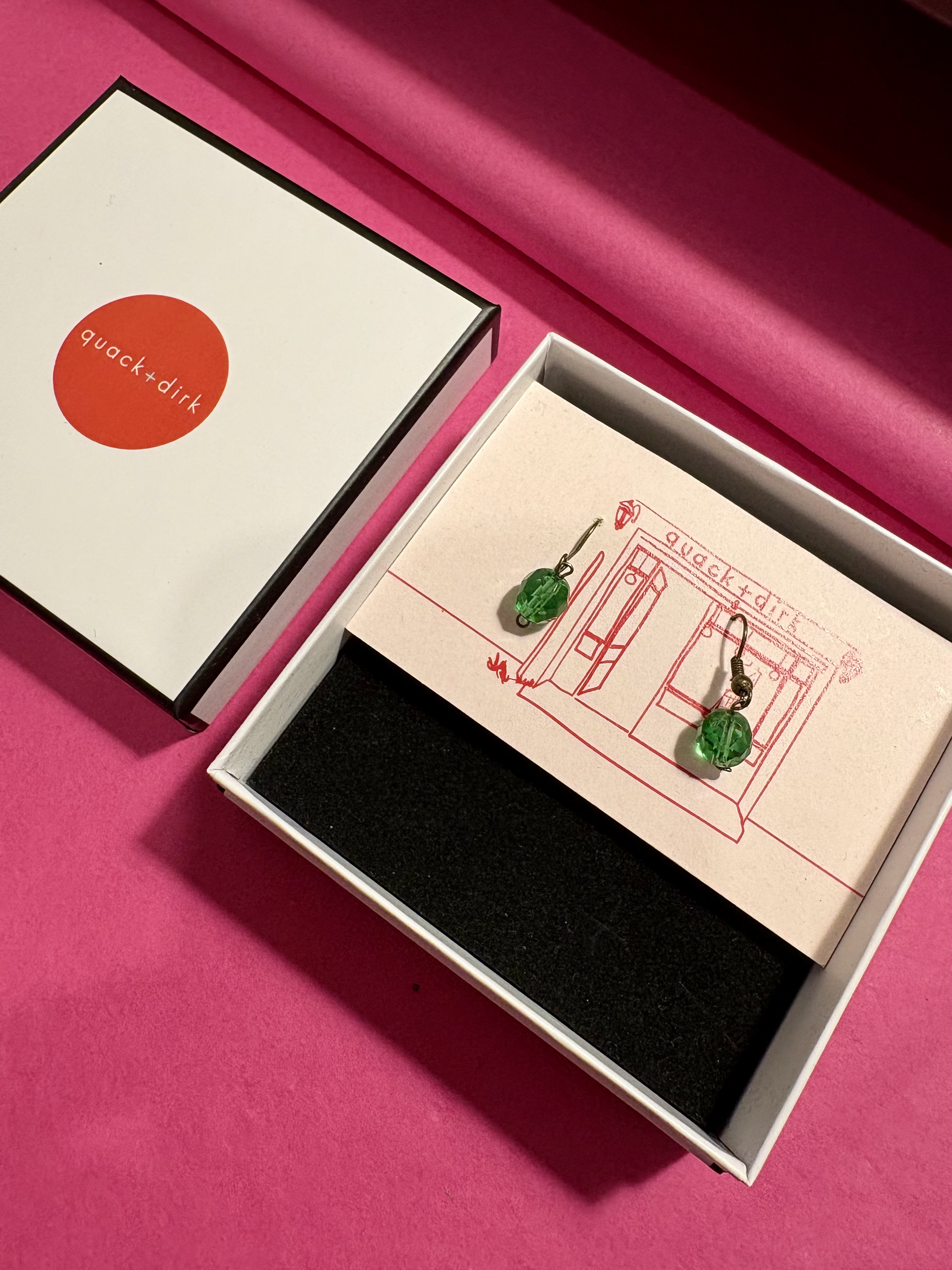 Cute costumer earrings. Lovely and light and easy to wear. Deids made them and you won't see another pair, they're a one off!