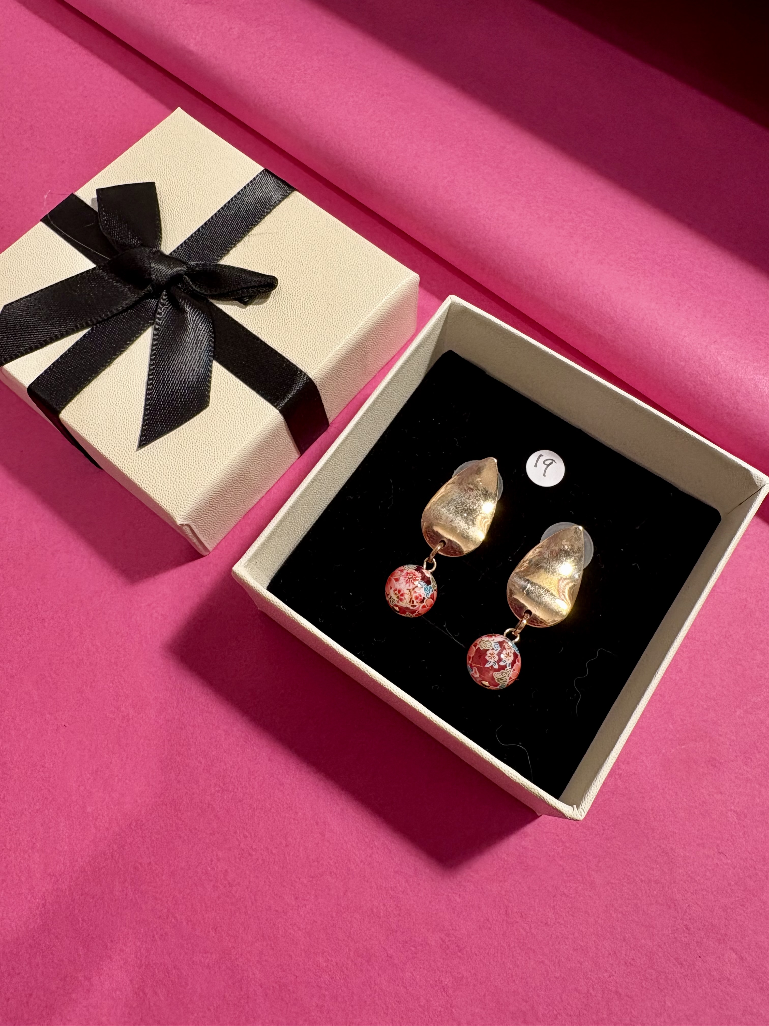 Cute costumer earrings. Lovely and light and easy to wear. Deids made them and you won't see another pair, they're a one off!
