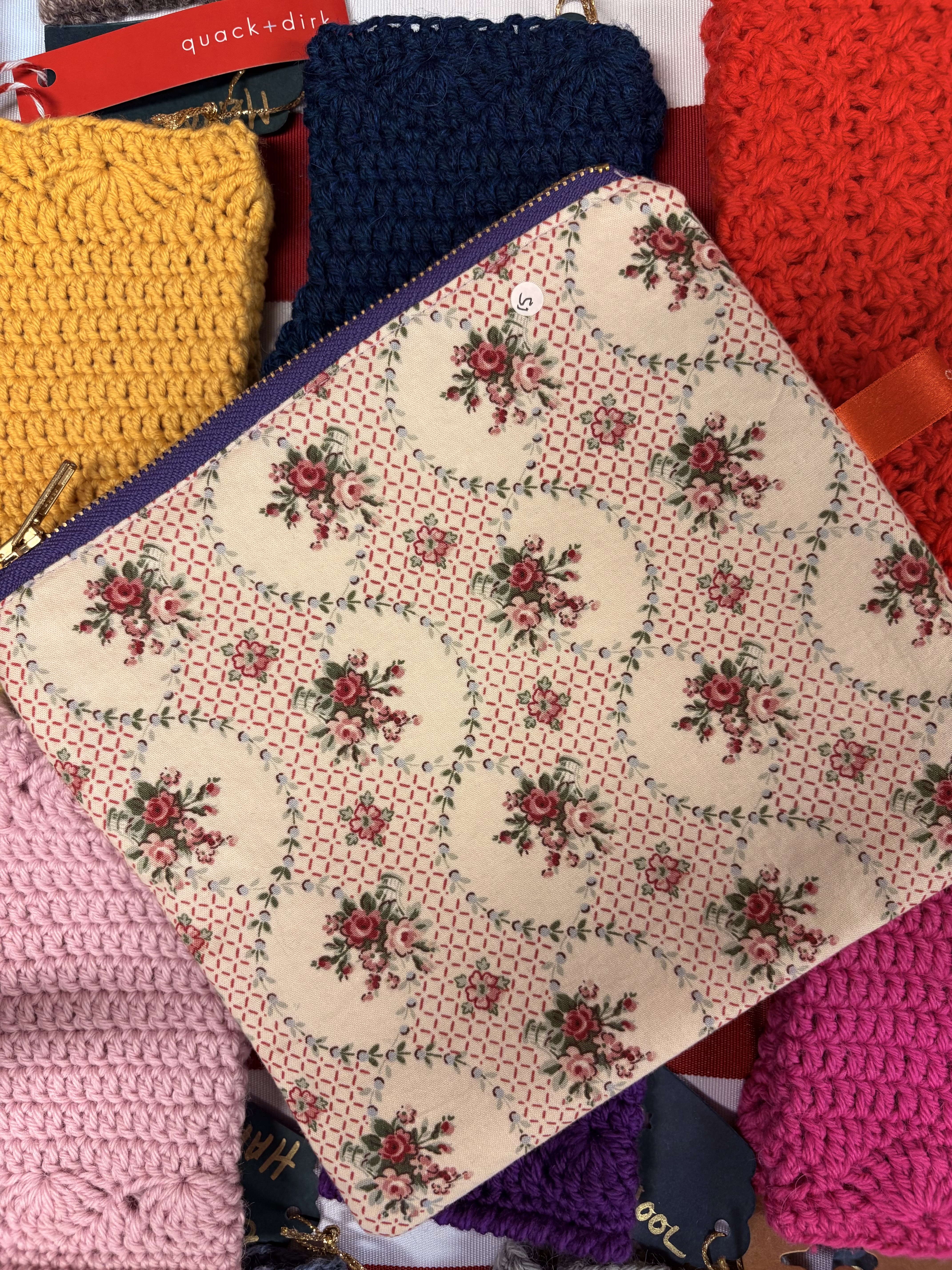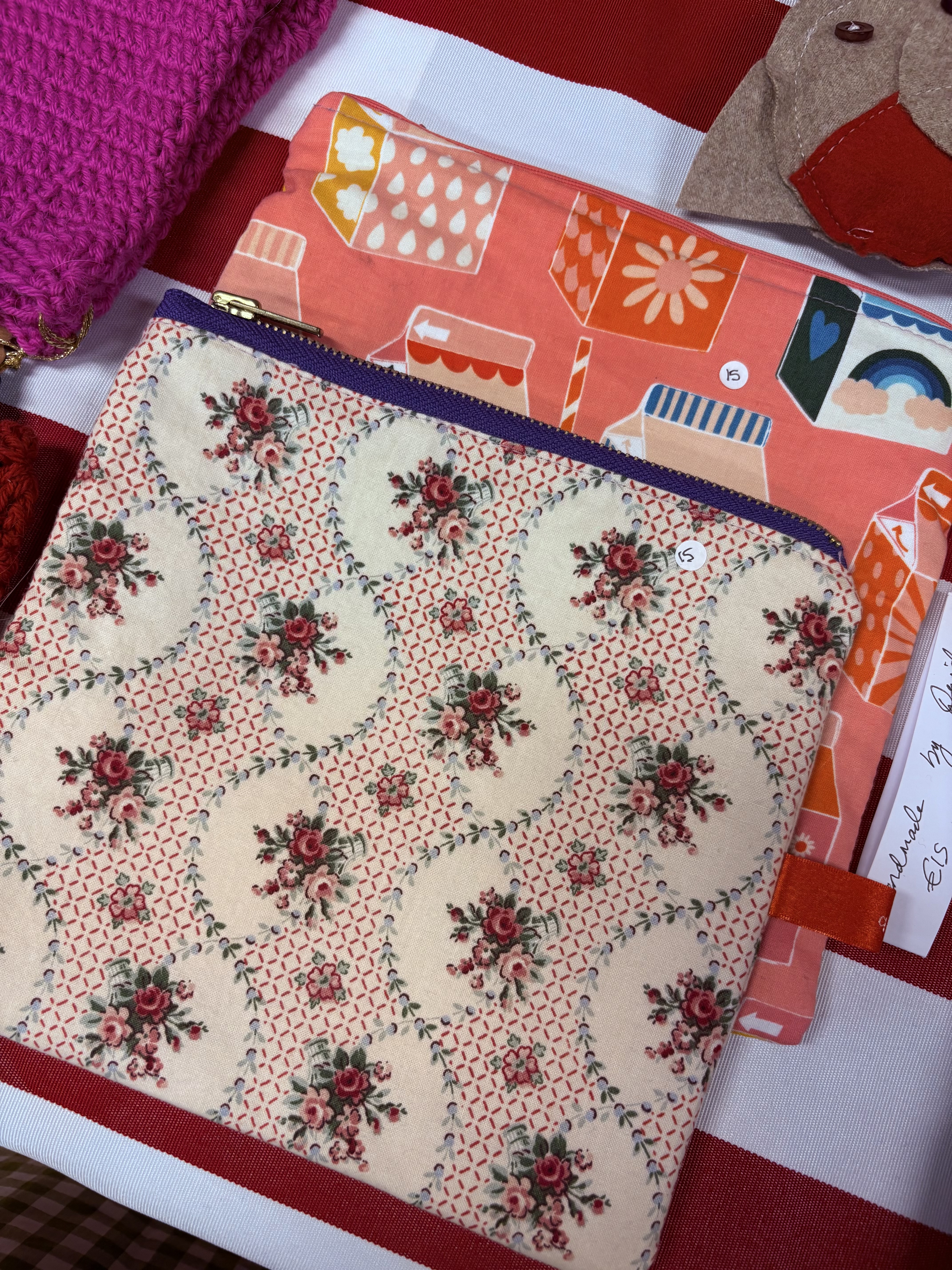 Cute cotton bags made from off cut fabrics. I've used stiffner to give them a bit more structure and a zip closure x Deids