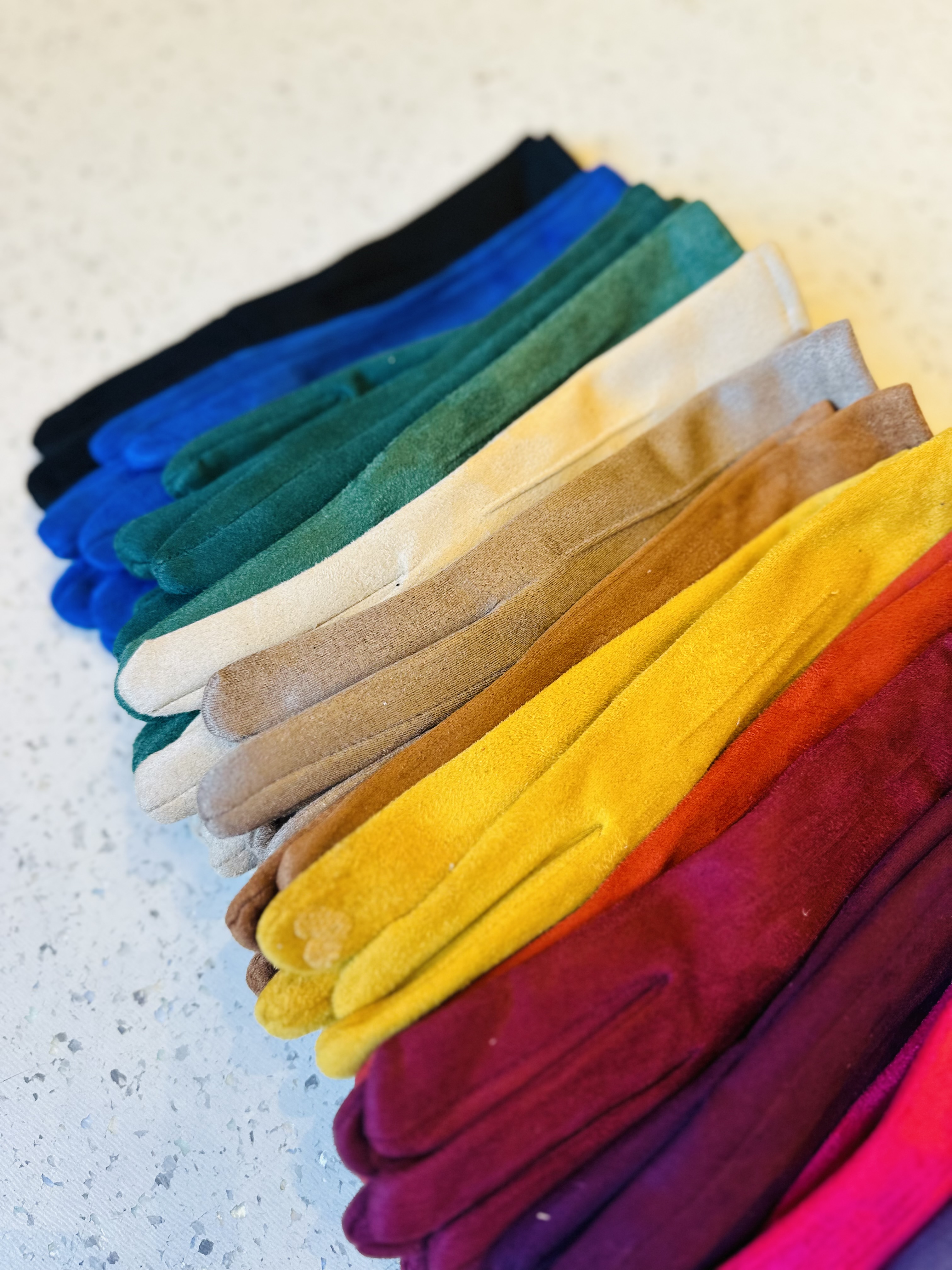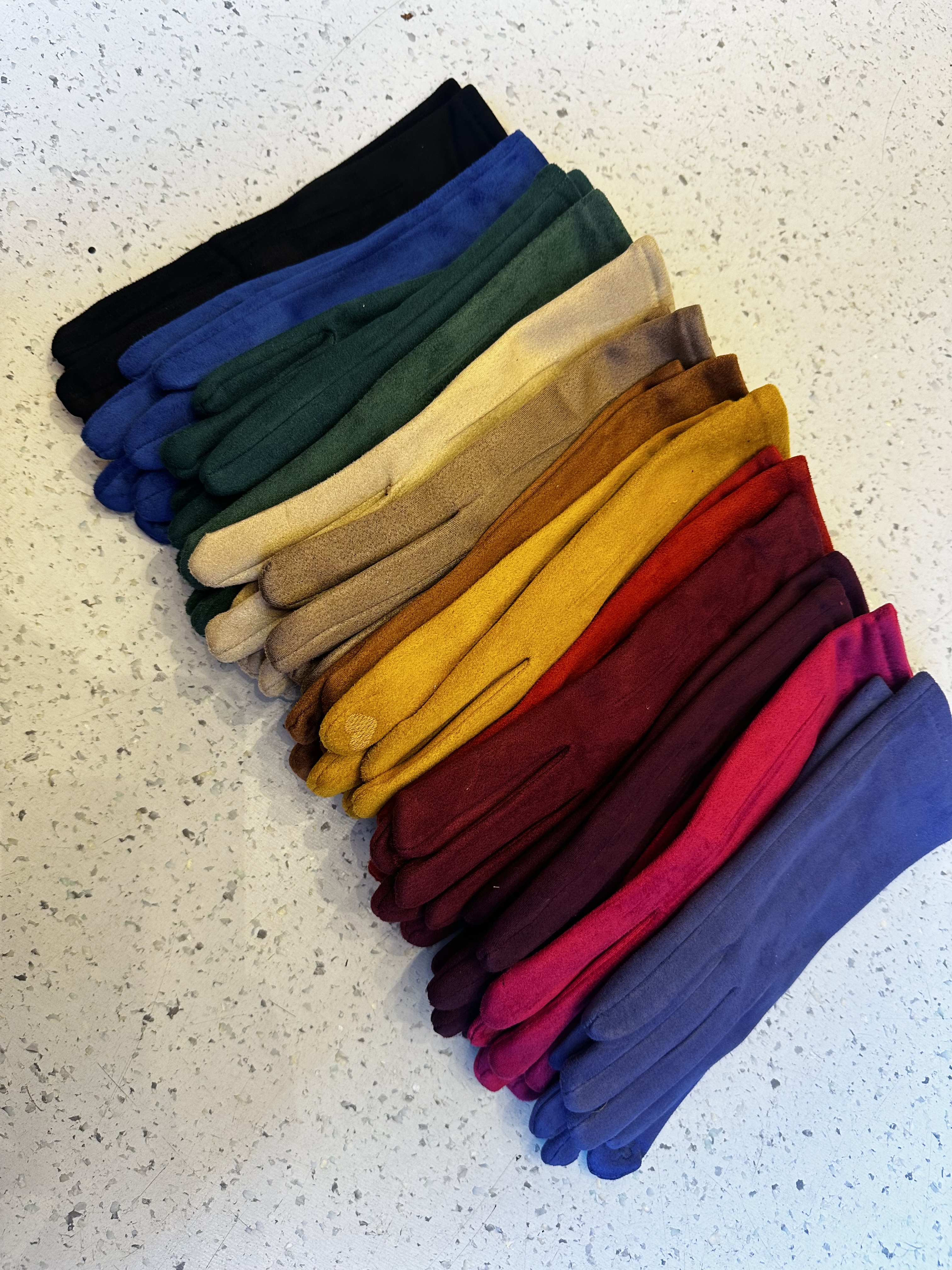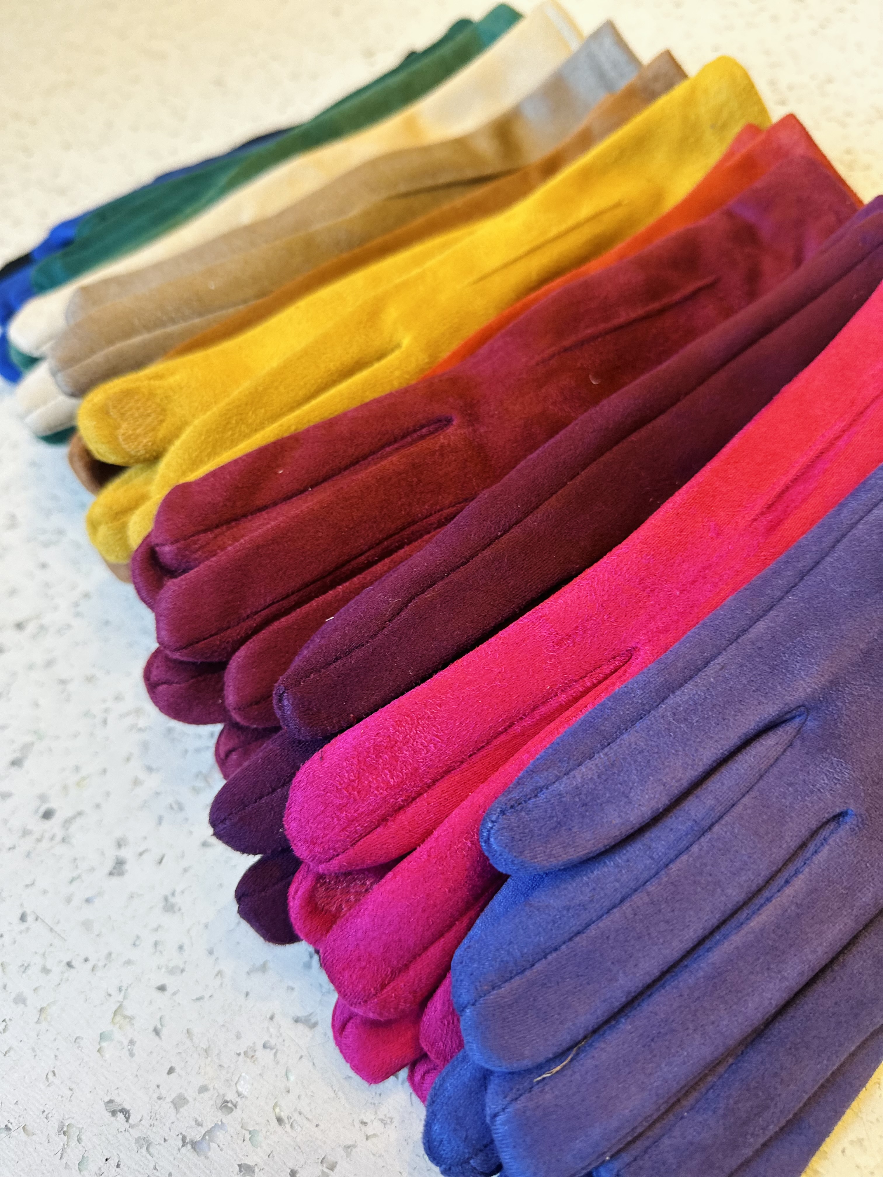 beautiful coooured gloves. one size fits all! Soft on the inside :)