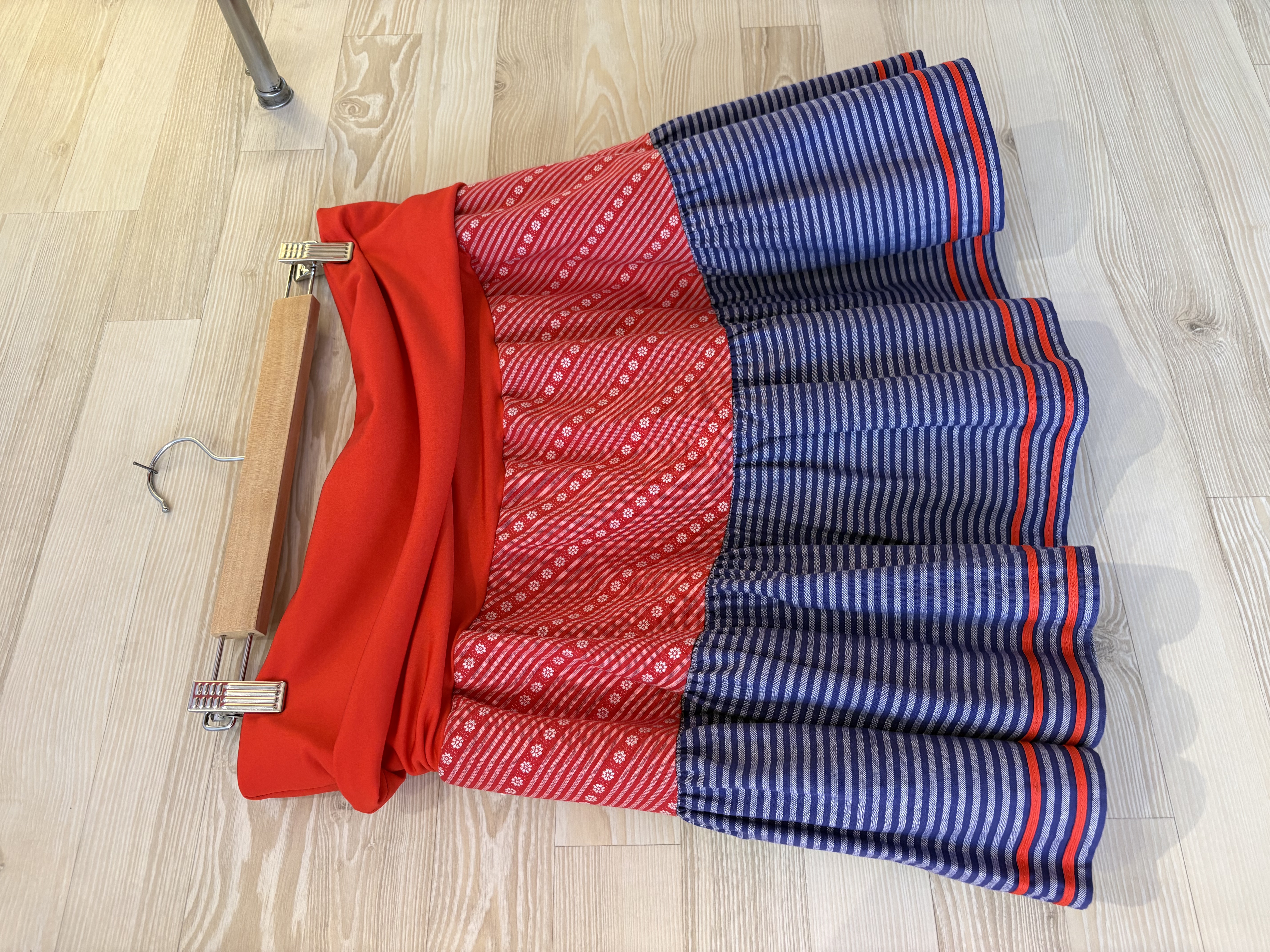 Cute skirt made from a vinateg skirt that was too long. It has an elastic waist, Machine washable xx