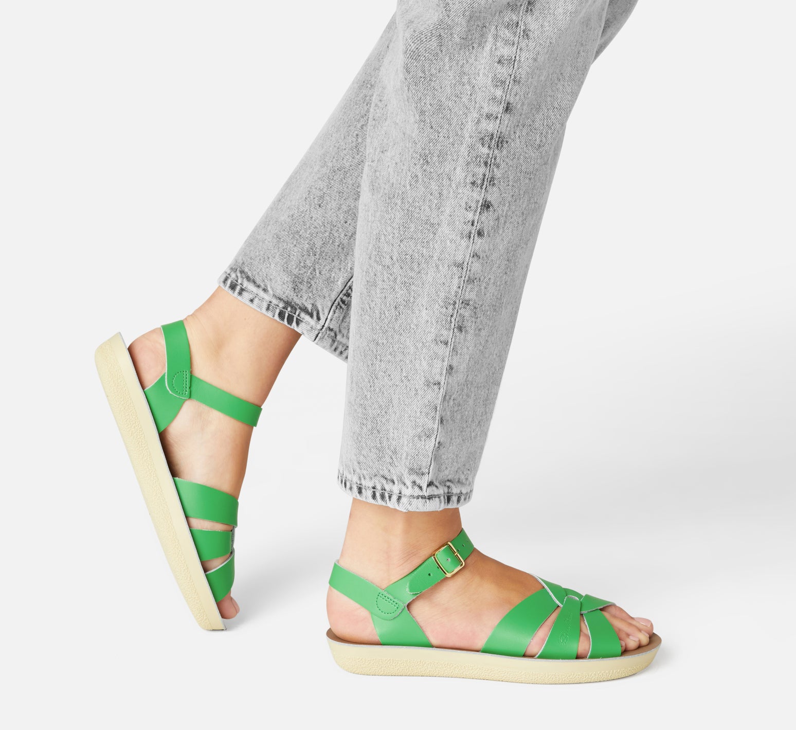 American Walter Hoy founded Salt Water during world war II in 1940 using scraps of leather left over from military boots. The quality and heritage of the brand has endured the test of time. Their signature stitched rubber sole and cross strap, water-resistant leather uppers are recognised worldwide.