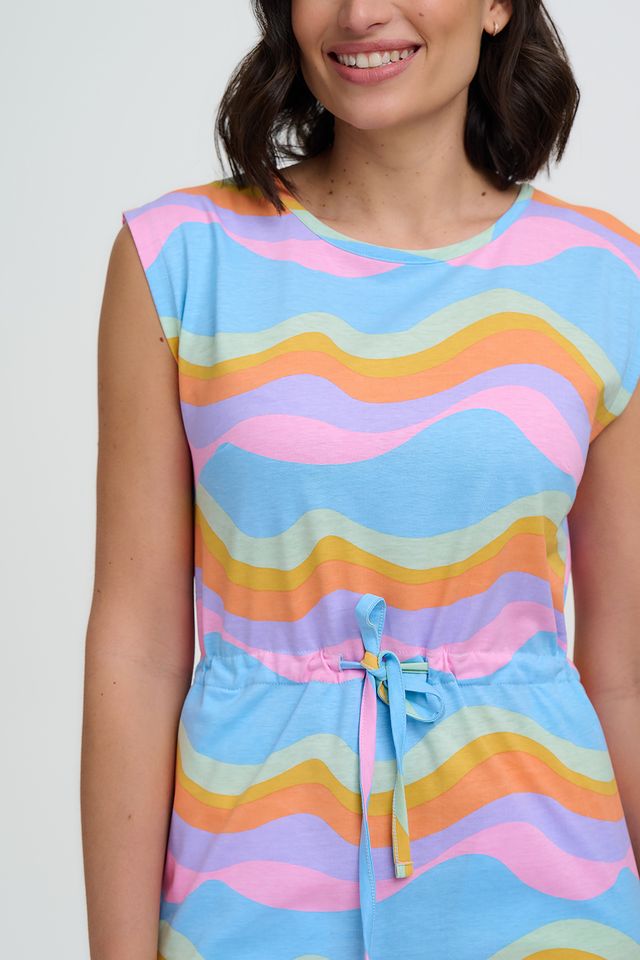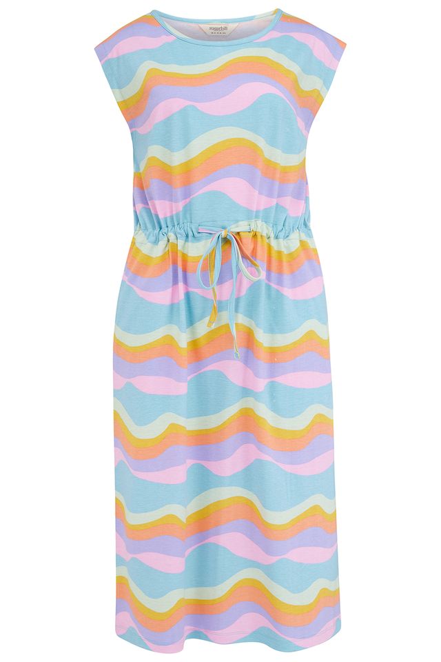 Say hello to Sloane — your new everyday favourite. This easy jersey midi dress features capped sleeves, a drawstring waist for a flattering fit, and of course, pockets! Made from soft, breathable cotton jersey, Sloane combines comfort with effortless style. The Summer Joy print adds a playful touch.