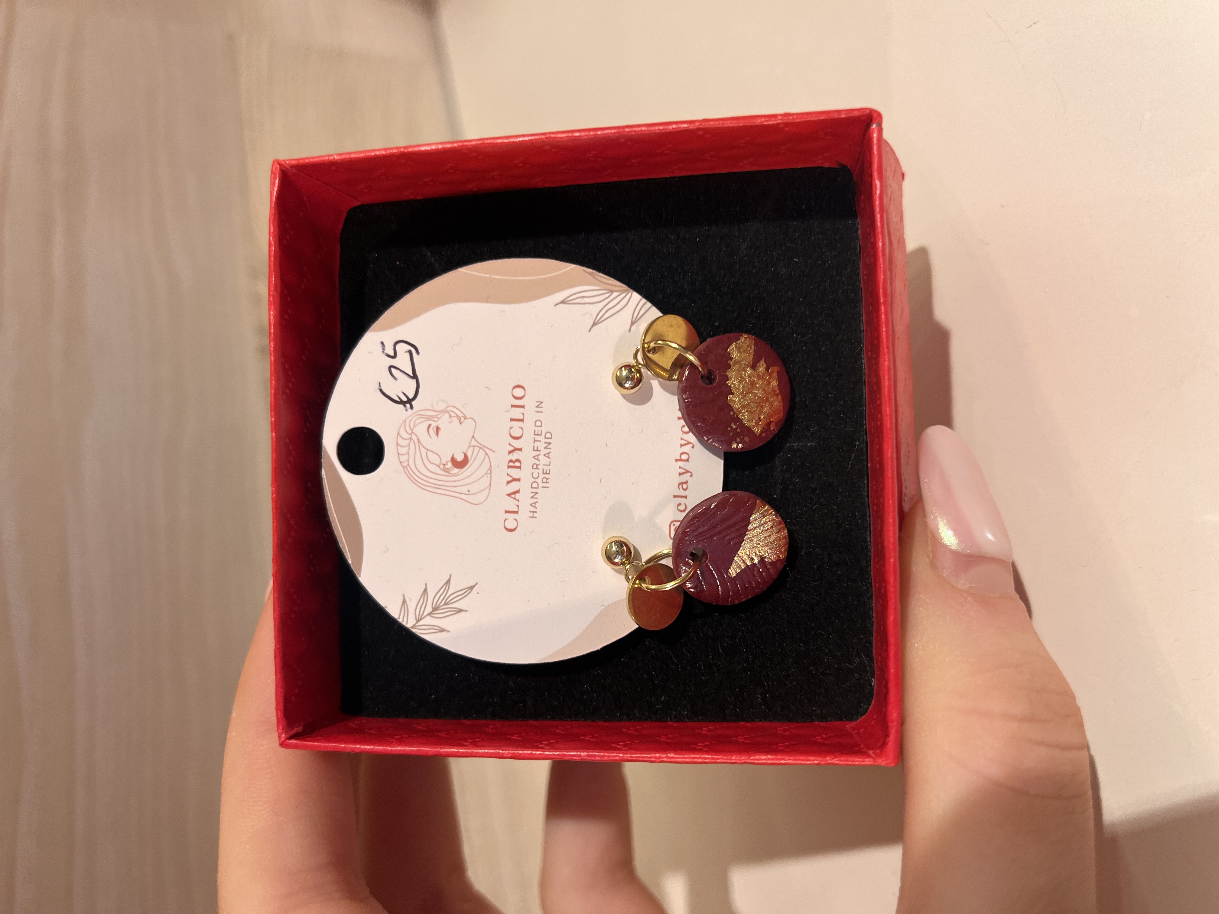 The drop earrings by Clio - Burgundy and gold