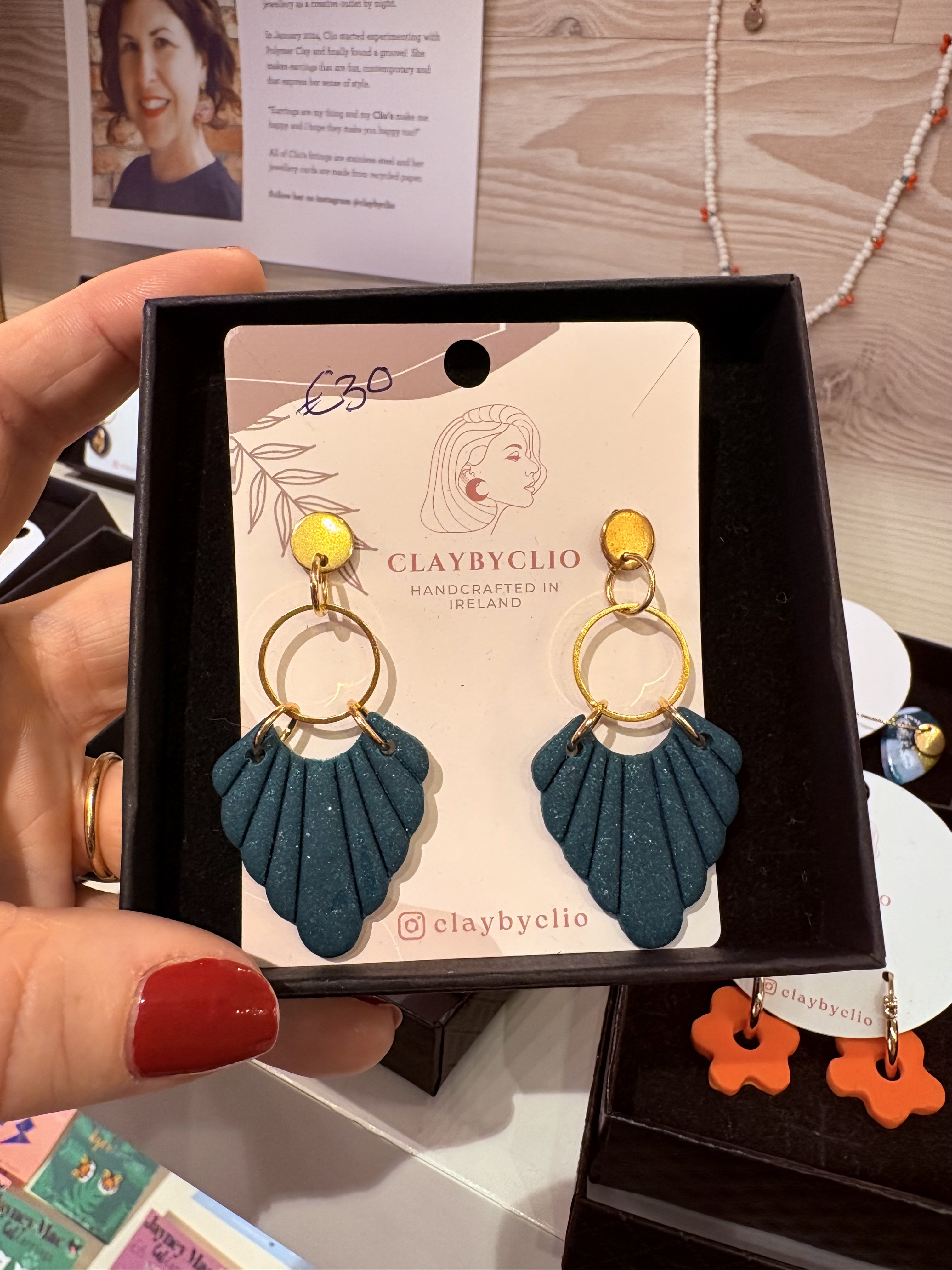 She makes these gorgous earrings in very small batches to keep them unique. Clio works with polymer clay and says to always store them in a box if traveling to protect, never stack or crush. The fixings and findings are all made from stainless steel. Comes in these gorgeous black gift boxes.
