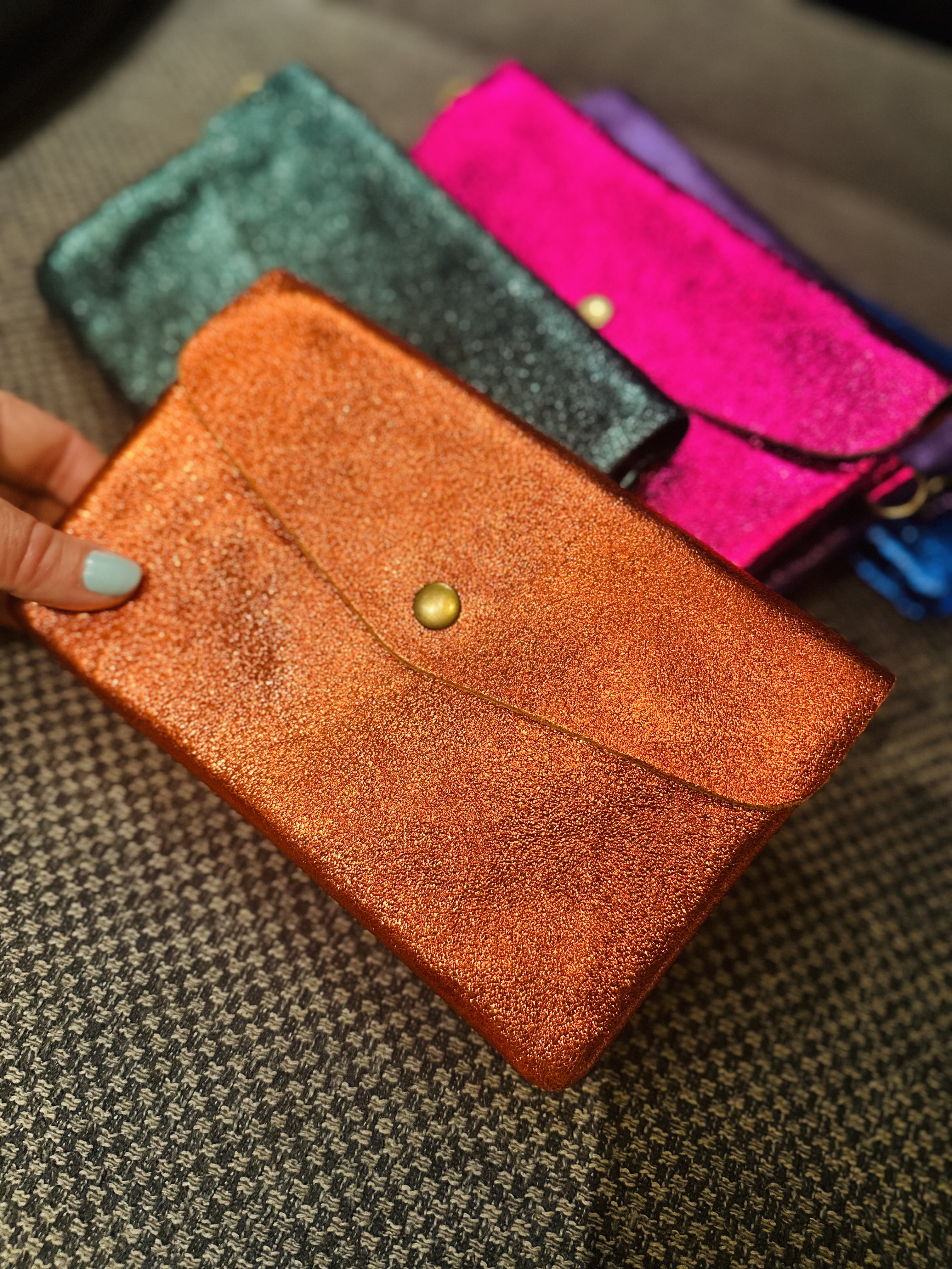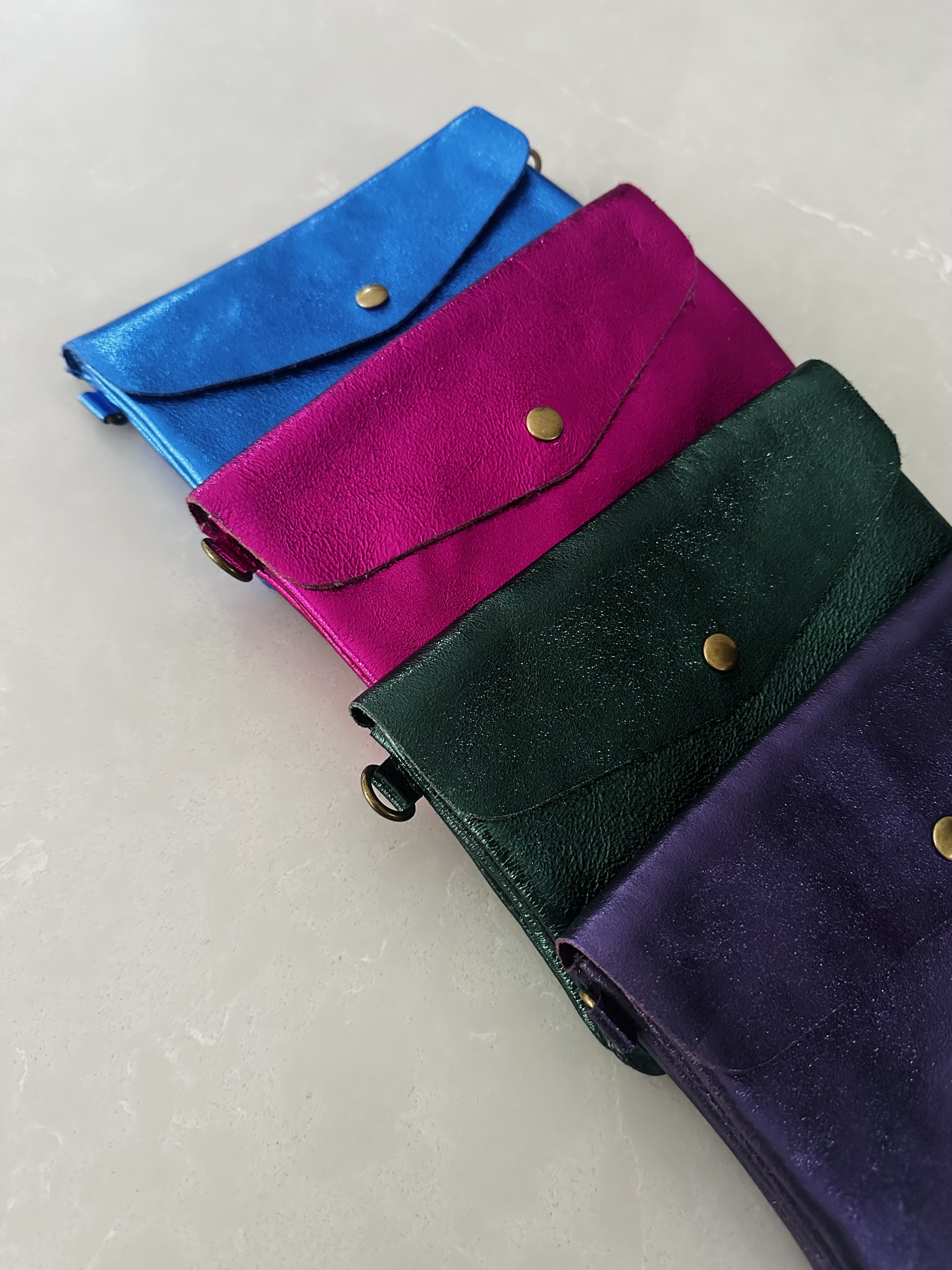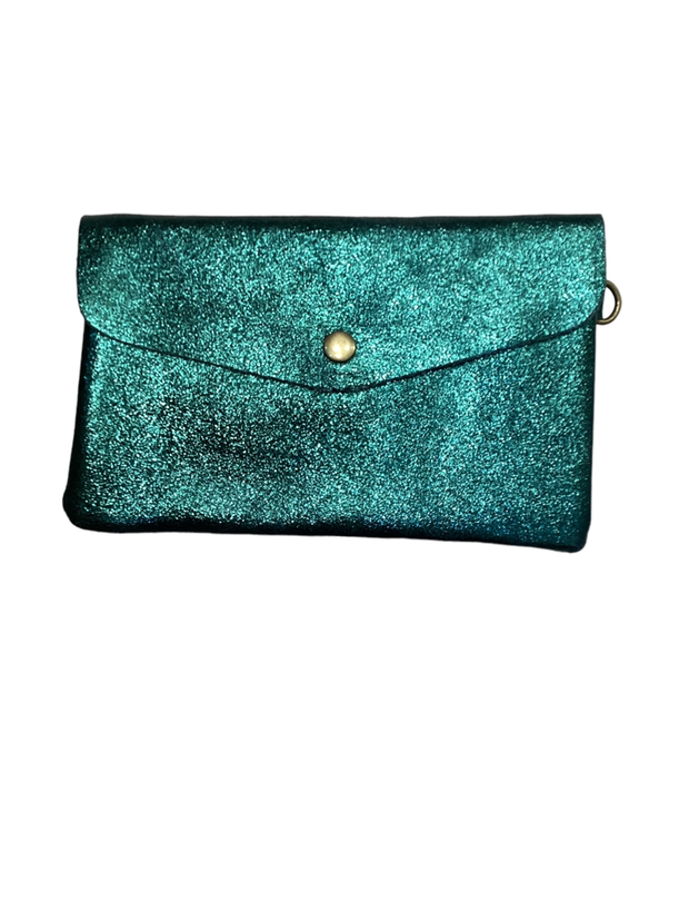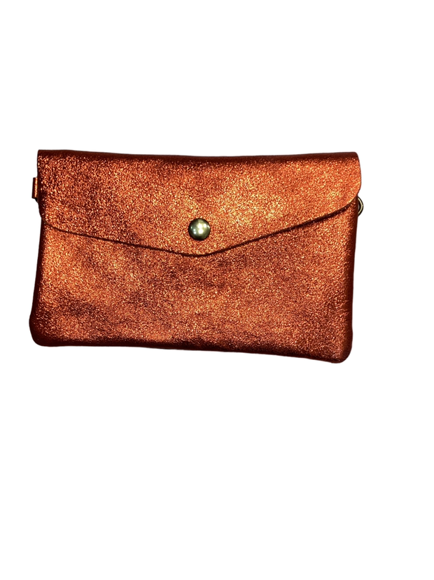 grorgeous little pouch, would fit your phone etc. Love the long strap, so sweet and handy. 100% leather, made in Italy, bought in Paris.