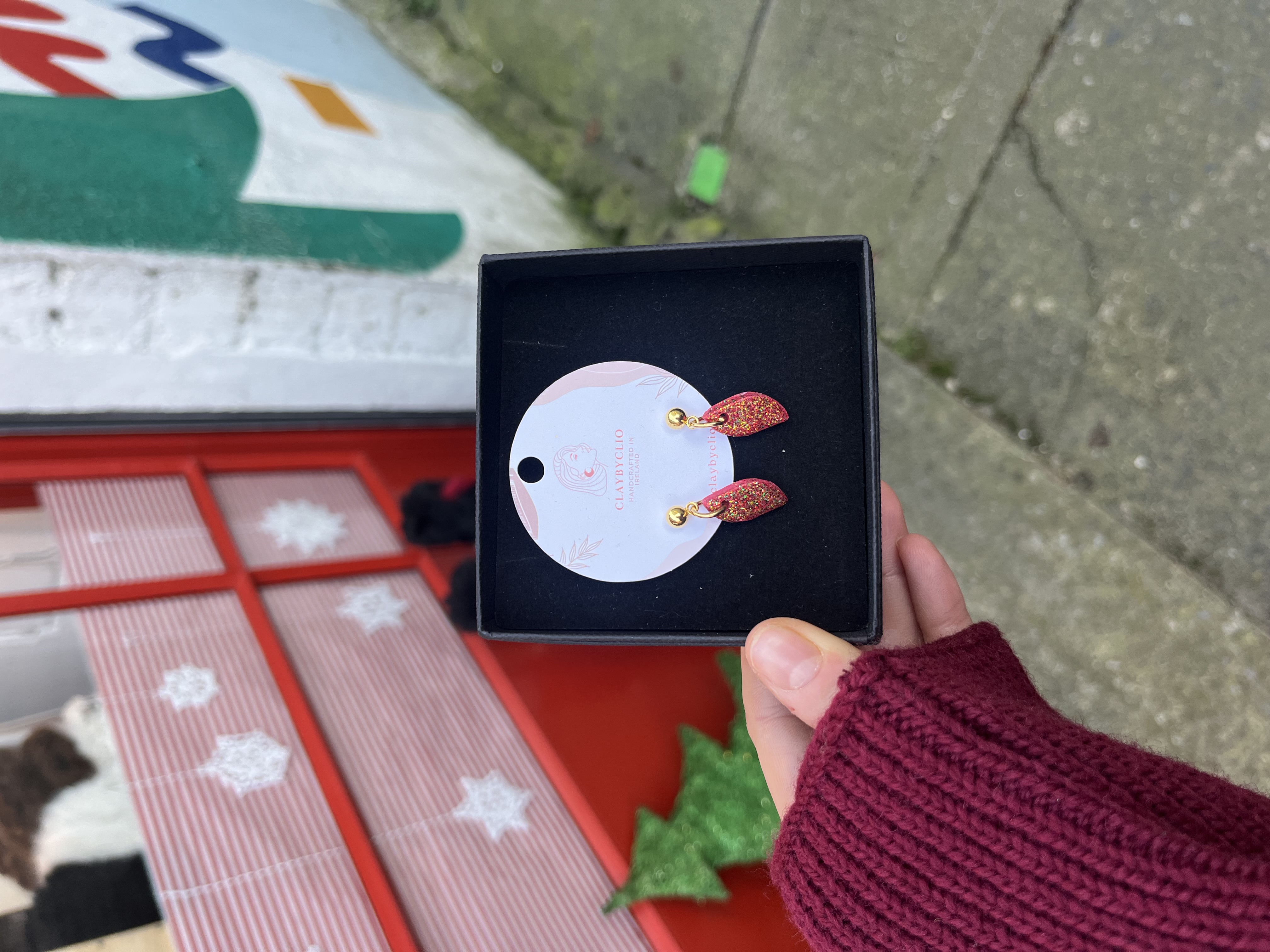 She makes these gorgous earrings in very small batches to keep them unique. Clio works with polymer clay and says to always store them in a box if traveling to protect, never stack or crush. The fixings and findings are all made from stainless steel. Comes in these gorgeous black gift boxes.