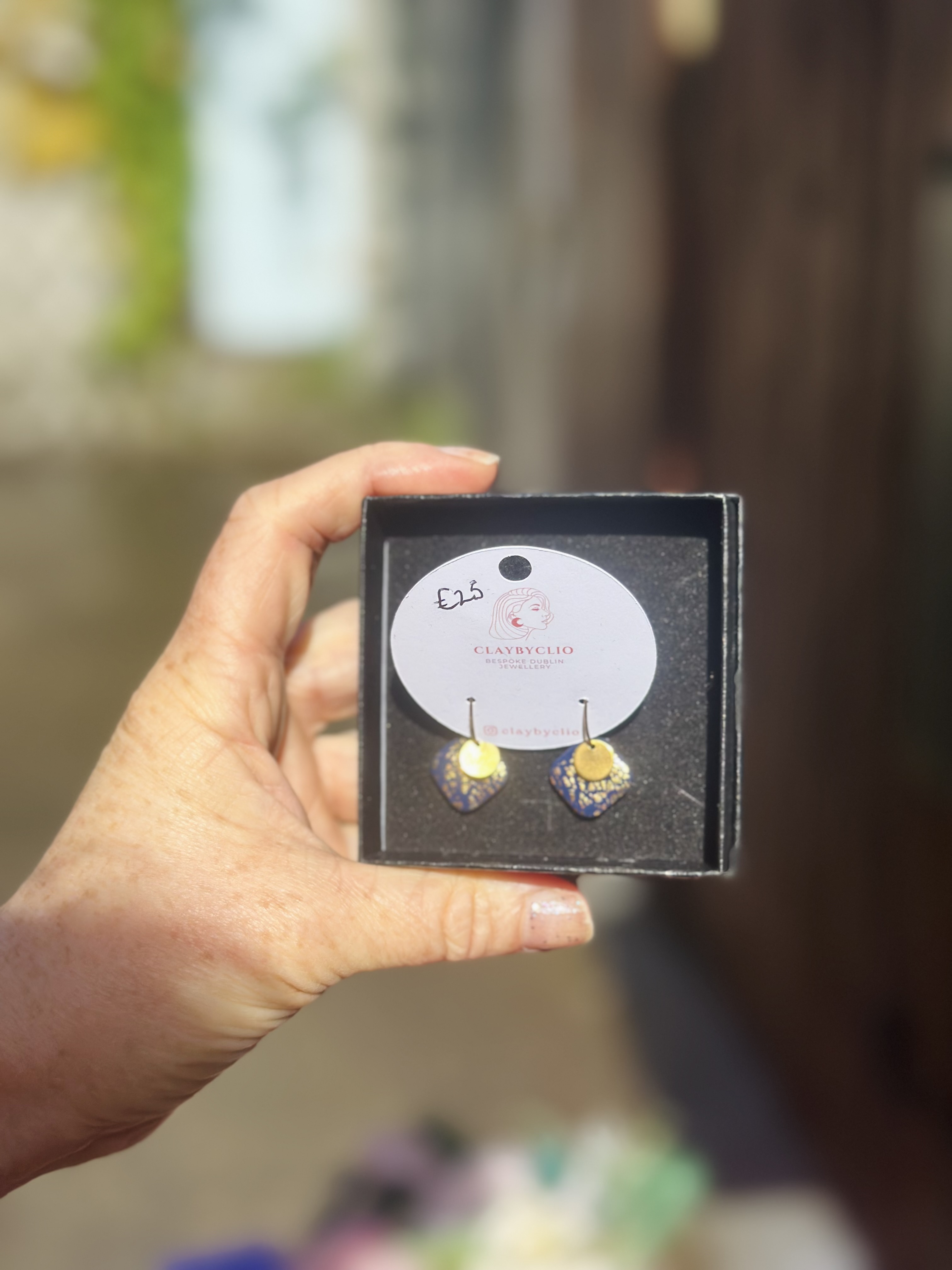 She makes these gorgous earrings in very small batches to keep them unique. Clio works with polymer clay and says to always store them in a box if traveling to protect, never stack or crush. The fixings and findings are all made from stainless steel. Comes in these gorgeous black gift boxes.