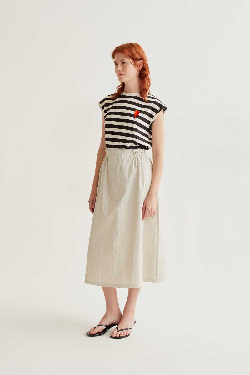 T-shirt with black striped print and tulip embroidery from Spain