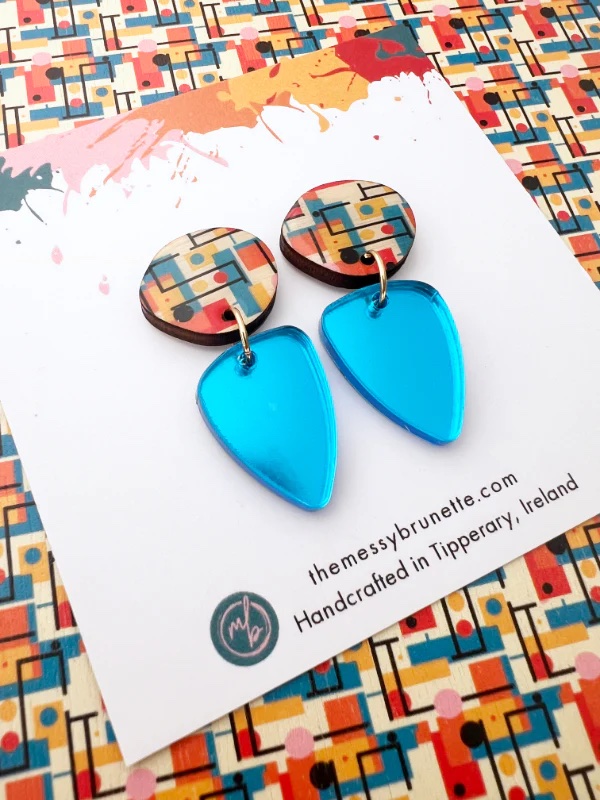 Maura is a Tipperary based designer & maker established in 2013. Maura's jewellery is laser cut from FSC certified European plywood & each piece she then hand paints & assembled. She uses eco friendly materials where possible, from the resin to the glitter to the packaging, to play our part in keeping the environment in good order. Her pieces are bright and colourful, like little pieces of wearable art & hopefully something to make you smile! She uses a combination of modern techniques, like UV printing and old traditional craft methods like decoupage in the pieces.