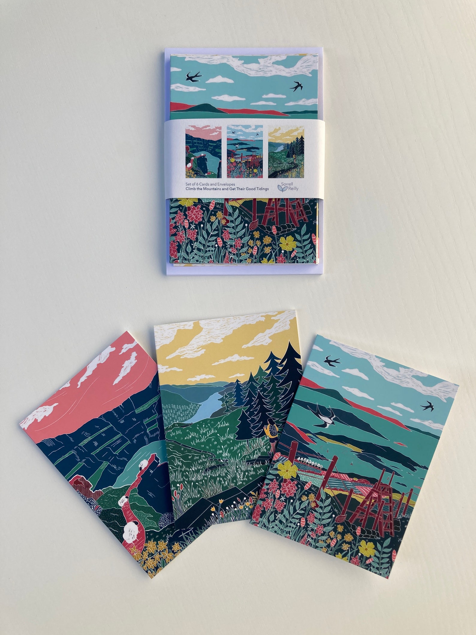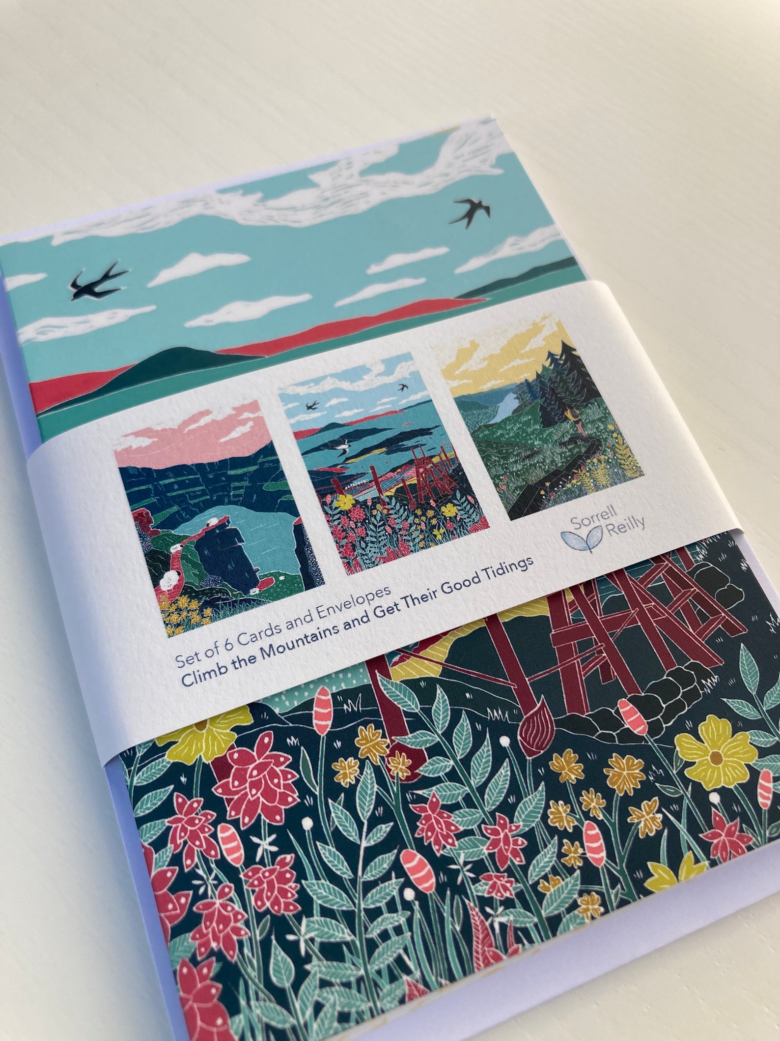 - Set of 6 notecards with envelopes, perfect for any occasion. Designs taken from my original prints of some of my favourite hiking trails in Ireland. A little reminder of the joys and healing nature of hiking in the beautiful mountains.