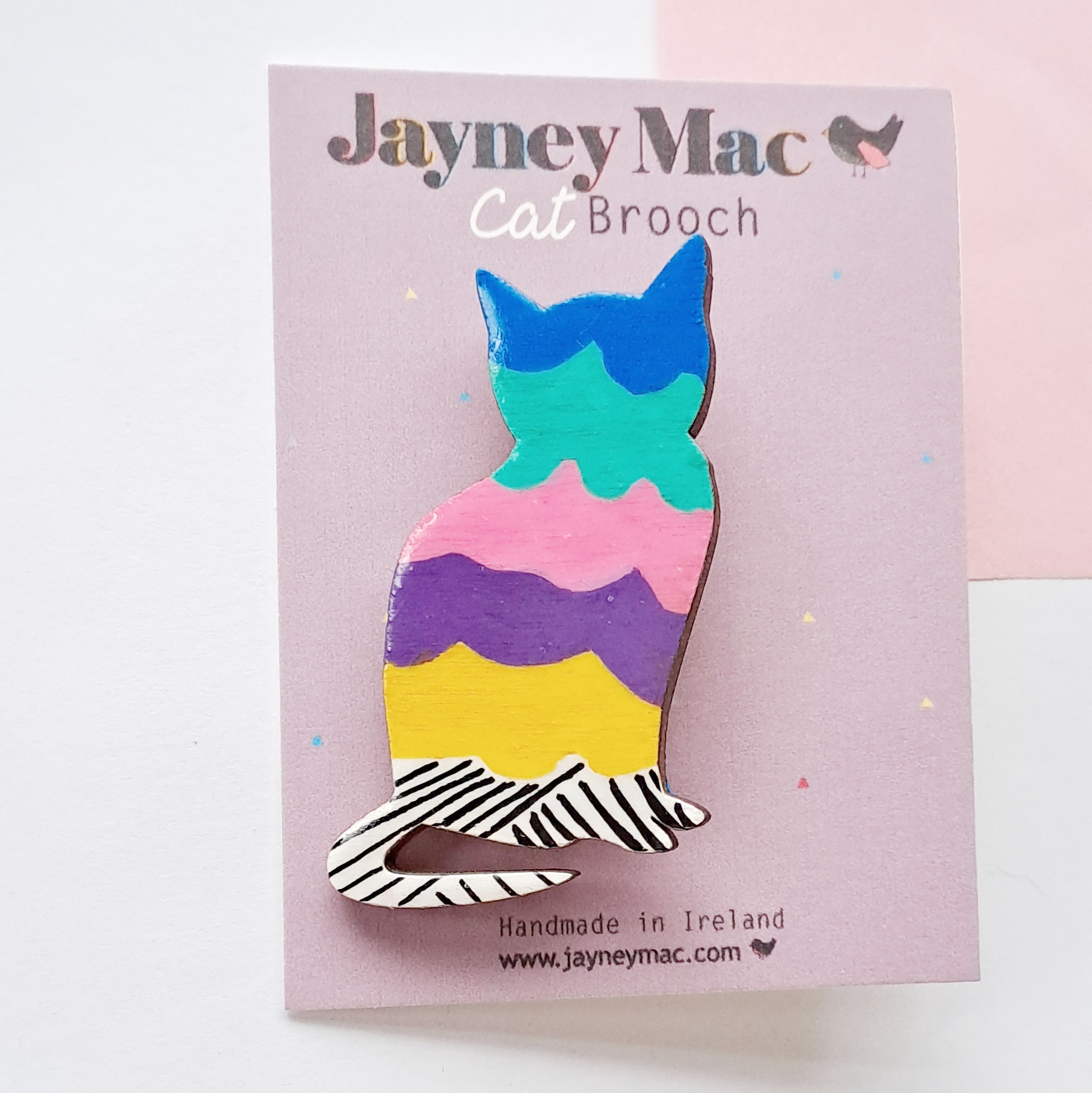 Hand painted wooden rainbow cat Brooch