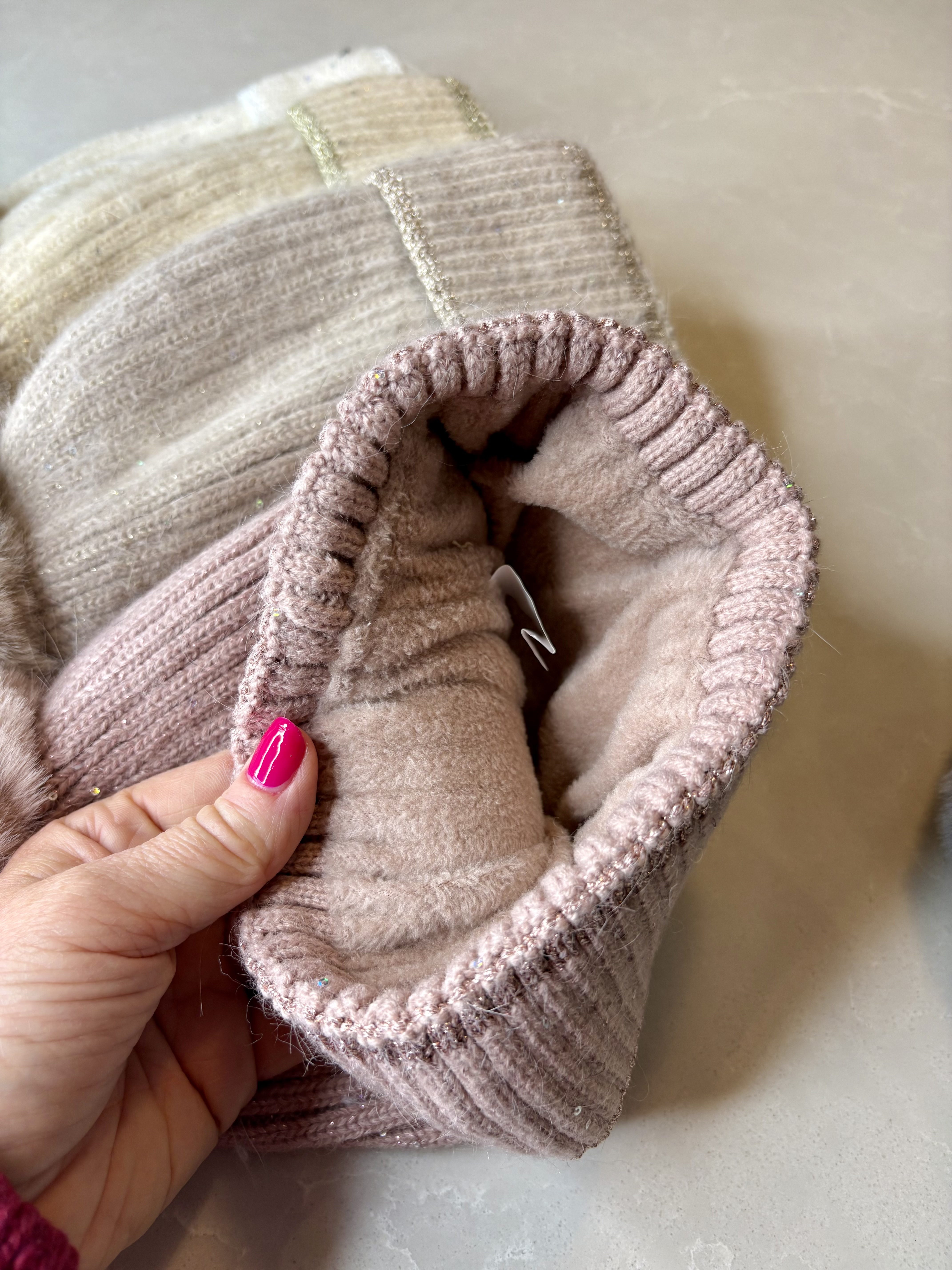 Really cosy hat with faux fur bobble.