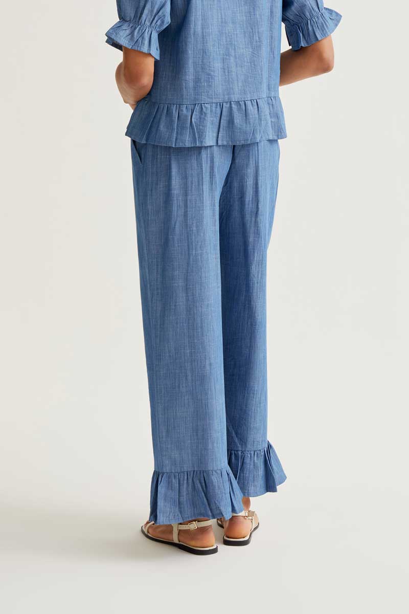 Light blue chambray 100% cotton trousers from Spain