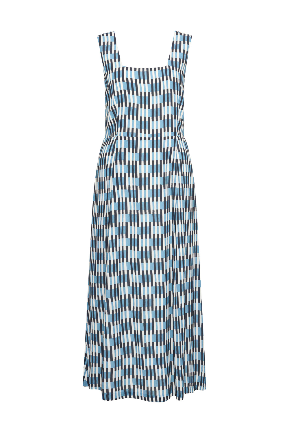 Square neck dress in navy check by Zilch