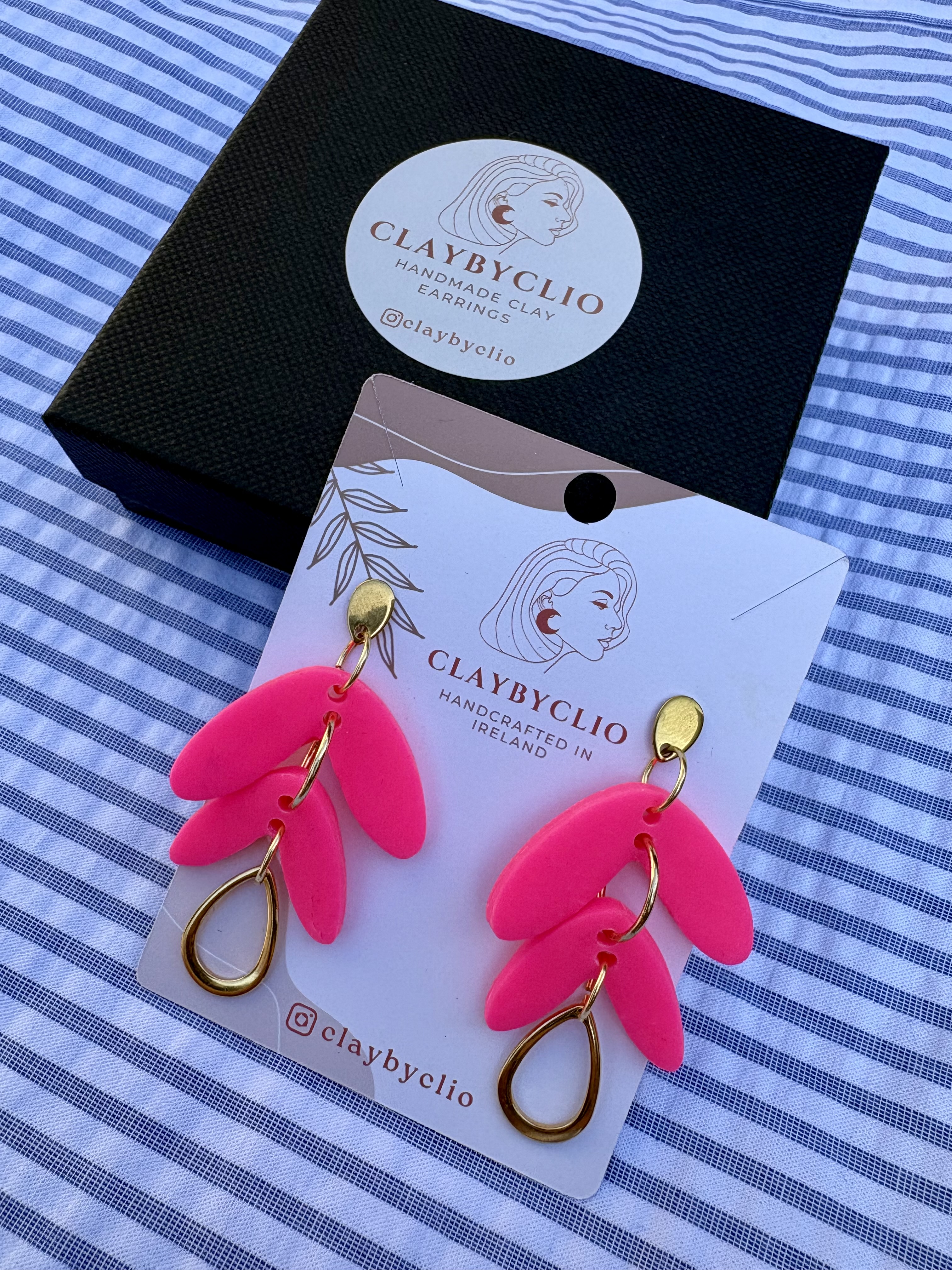 She makes these gorgous earrings in very small batches to keep them unique. Clio works with polymer clay and says to always store them in a box if traveling to protect, never stack or crush. The fixings and findings are all made from stainless steel. Comes in these gorgeous black gift boxes.
