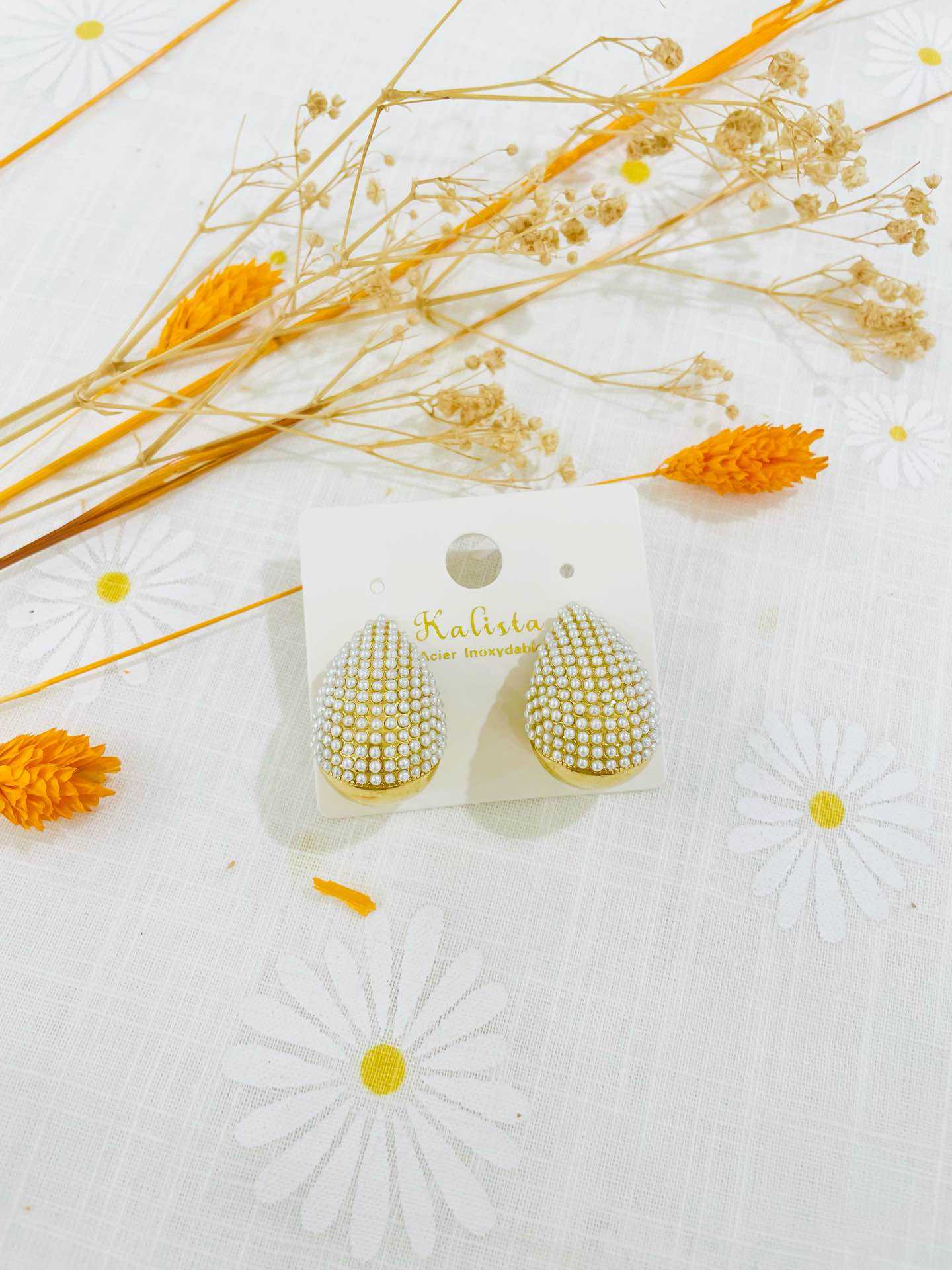 The large drop pearl earrings
