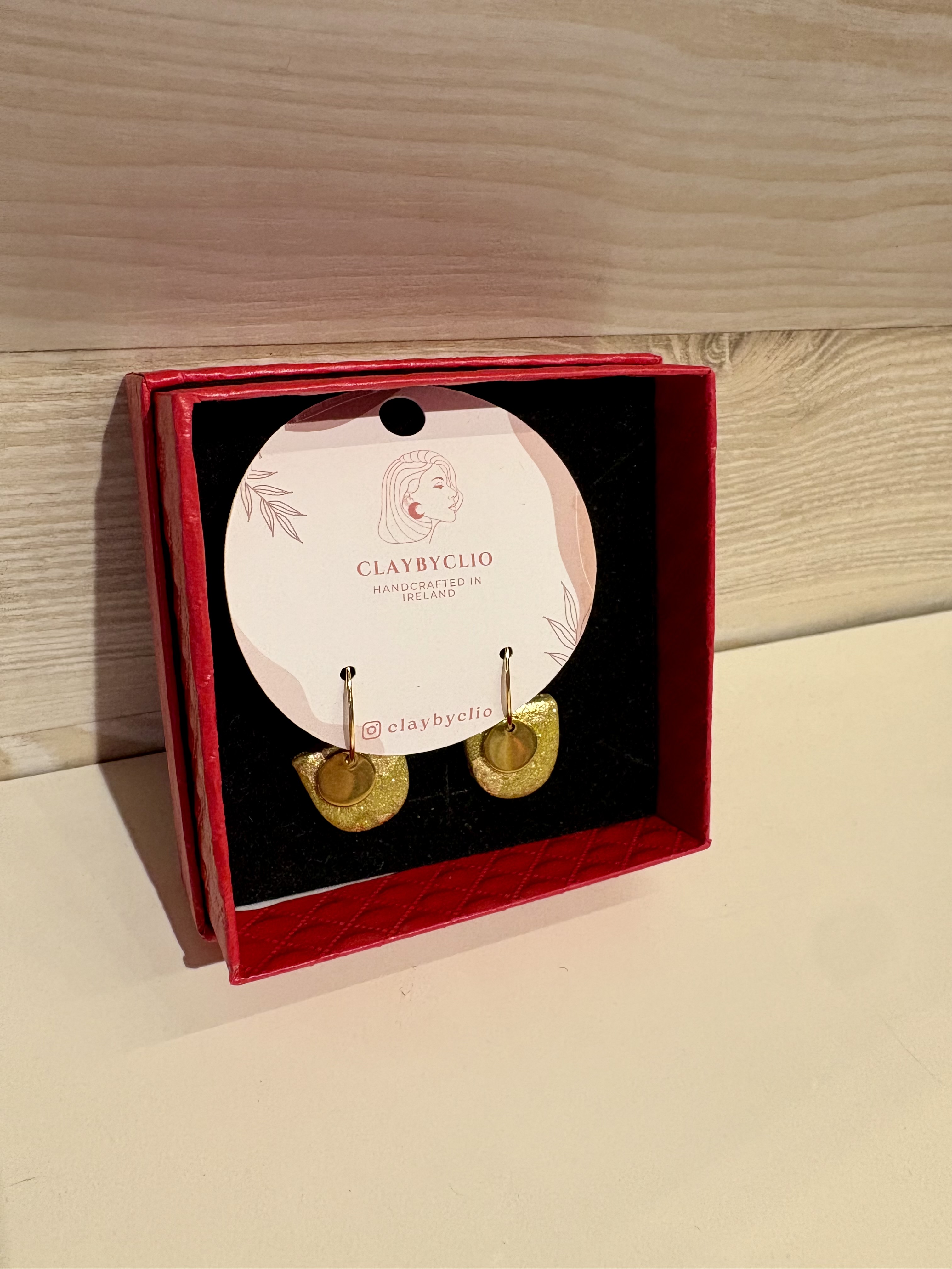 She makes these gorgous earrings in very small batches to keep them unique. Clio works with polymer clay and says to always store them in a box if traveling to protect, never stack or crush. The fixings and findings are all made from stainless steel. Comes in these gorgeous black gift boxes.