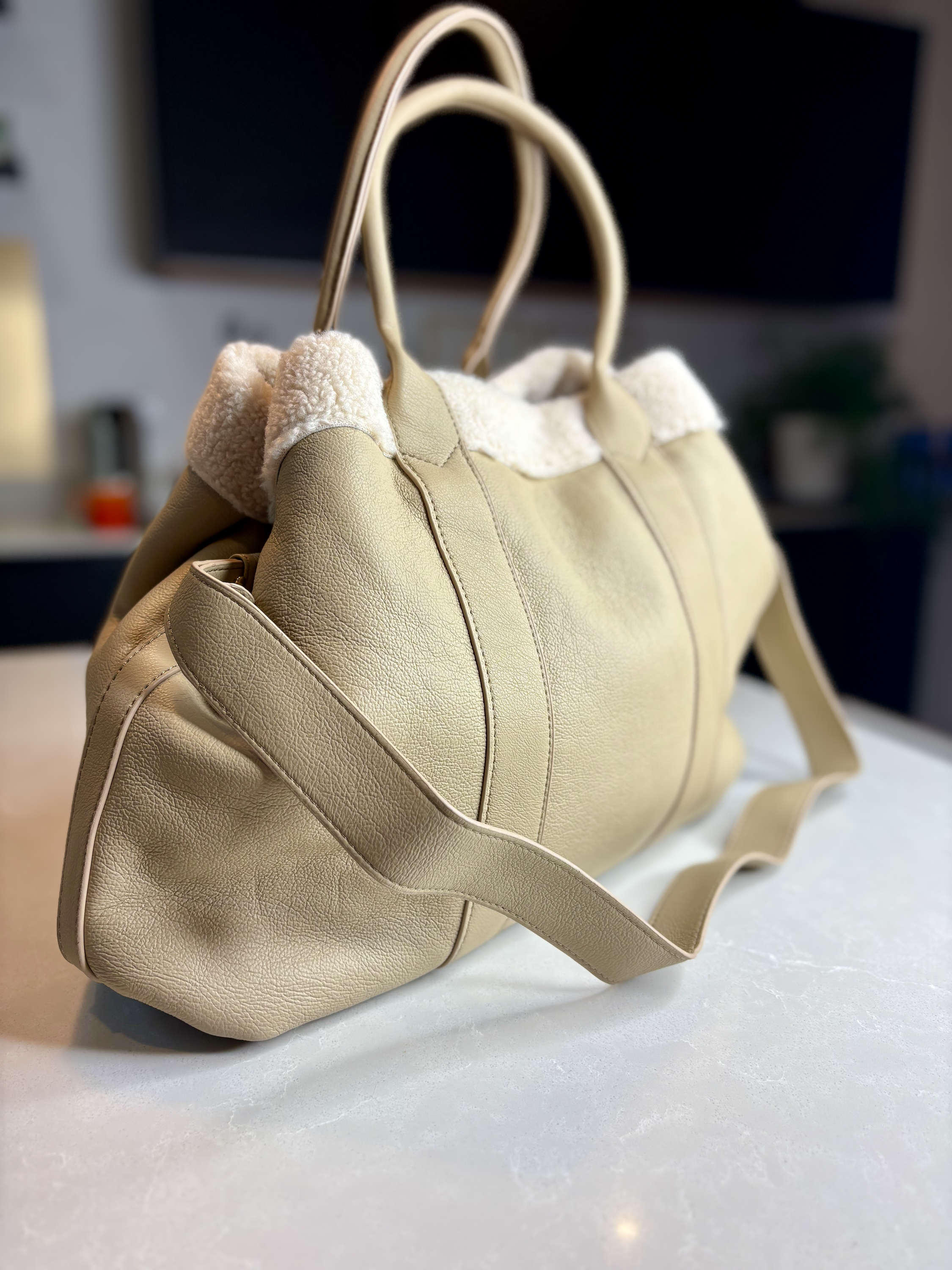 Very cute bag, Moc leather. Can be worn a few differnt ways. Comes with litte poch inside with a zip closire.