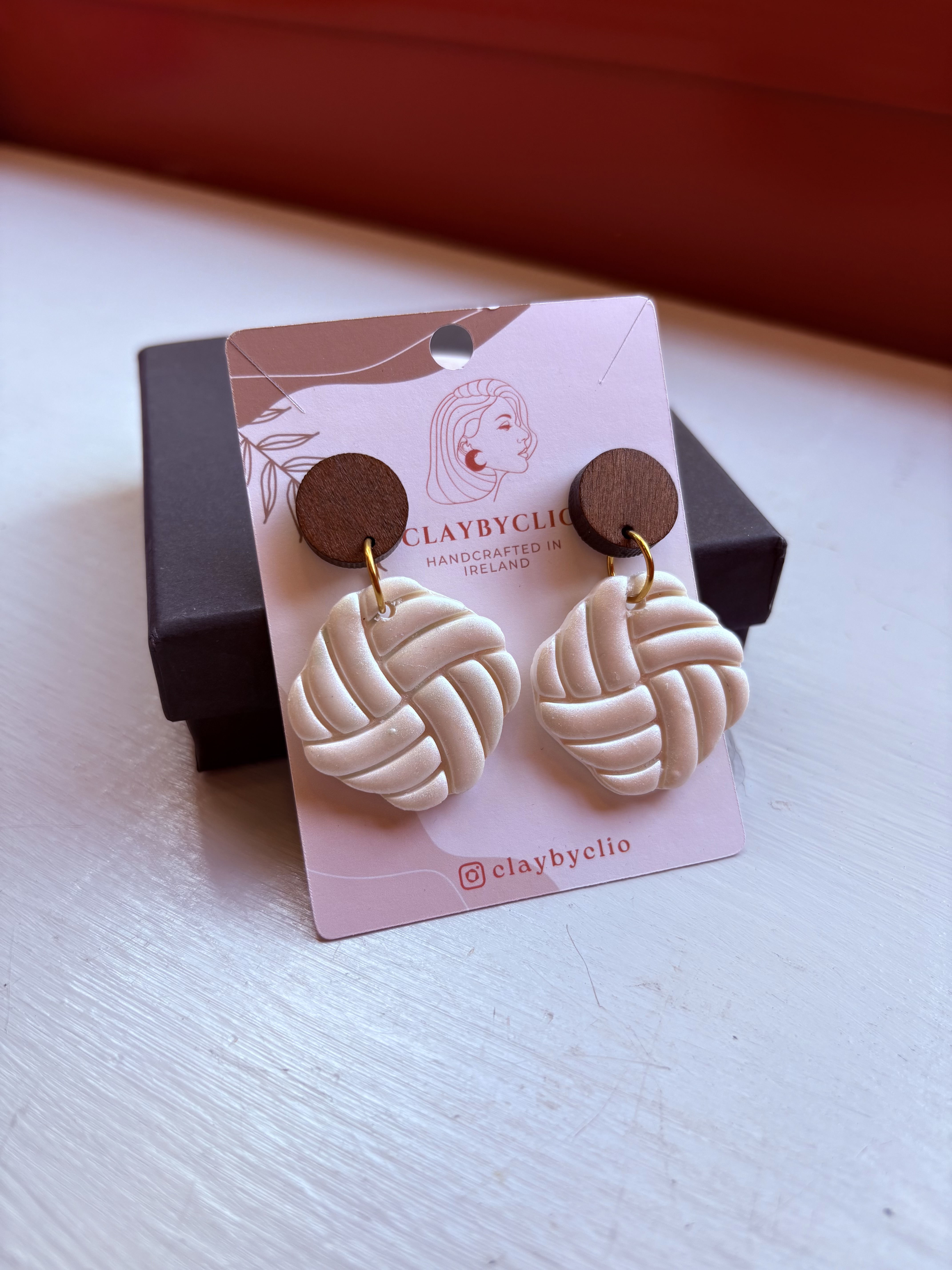 She makes these gorgous earrings in very small batches to keep them unique. Clio works with polymer clay and says to always store them in a box if traveling to protect, never stack or crush. The fixings and findings are all made from stainless steel. Comes in these gorgeous black gift boxes.