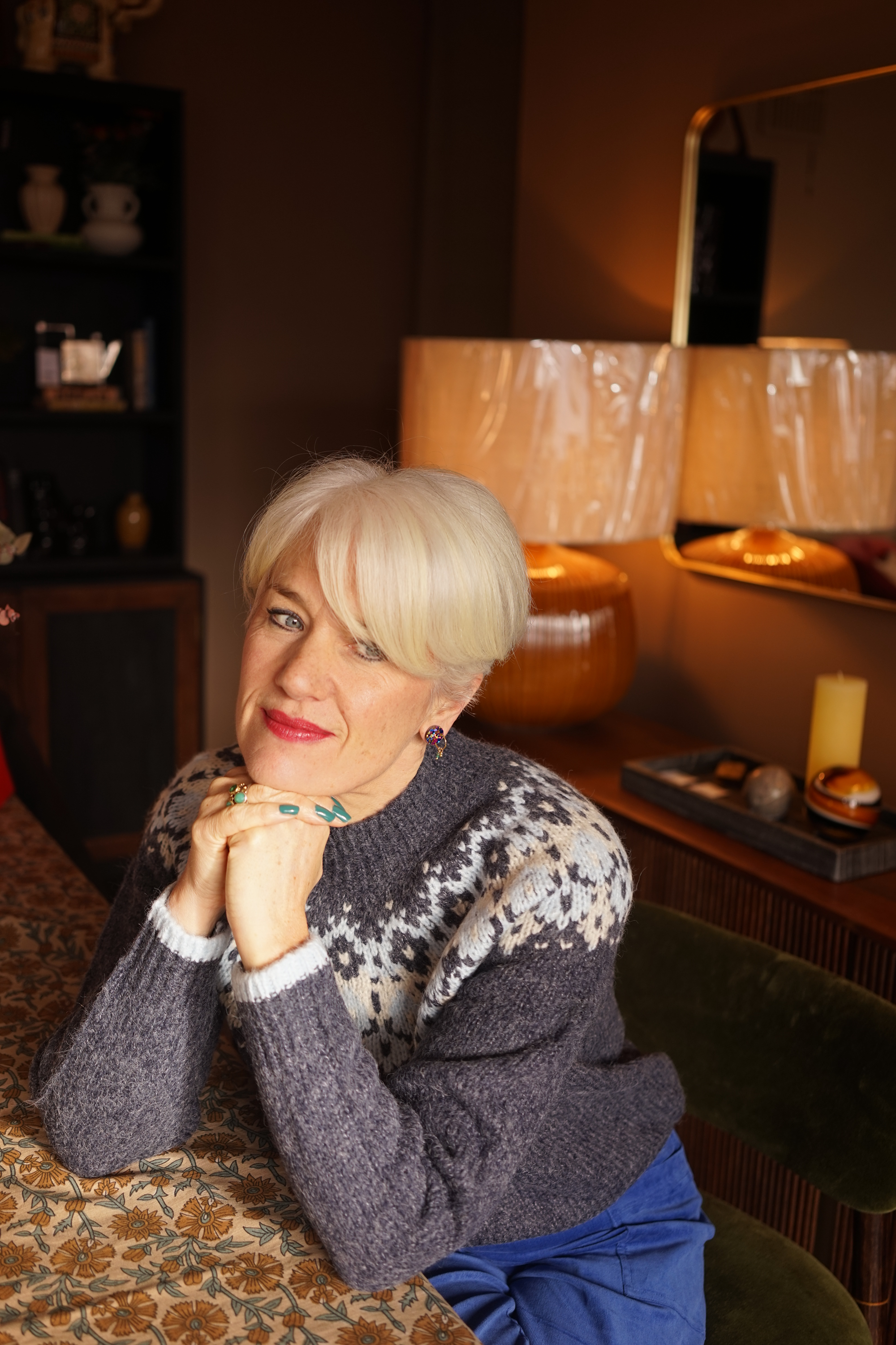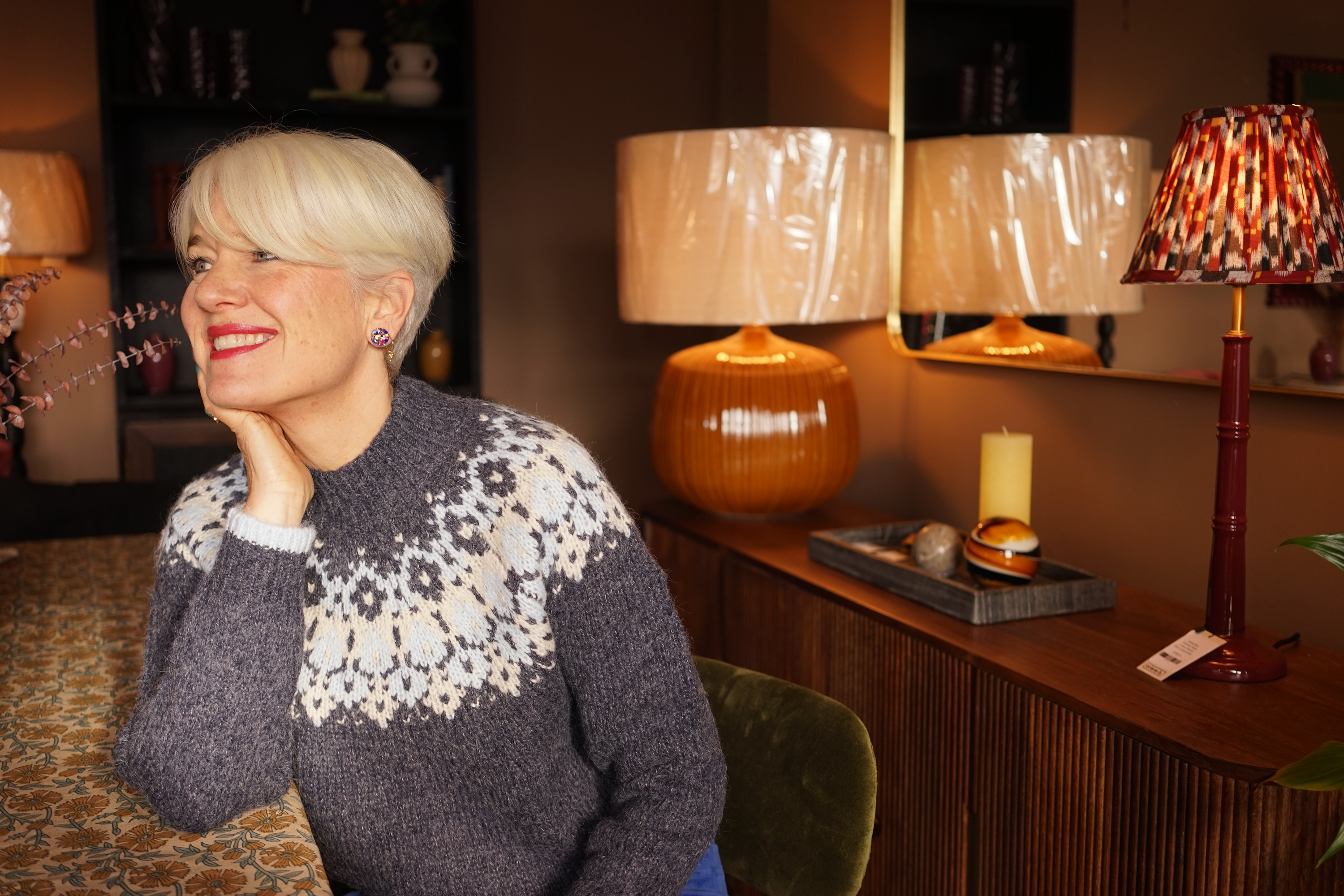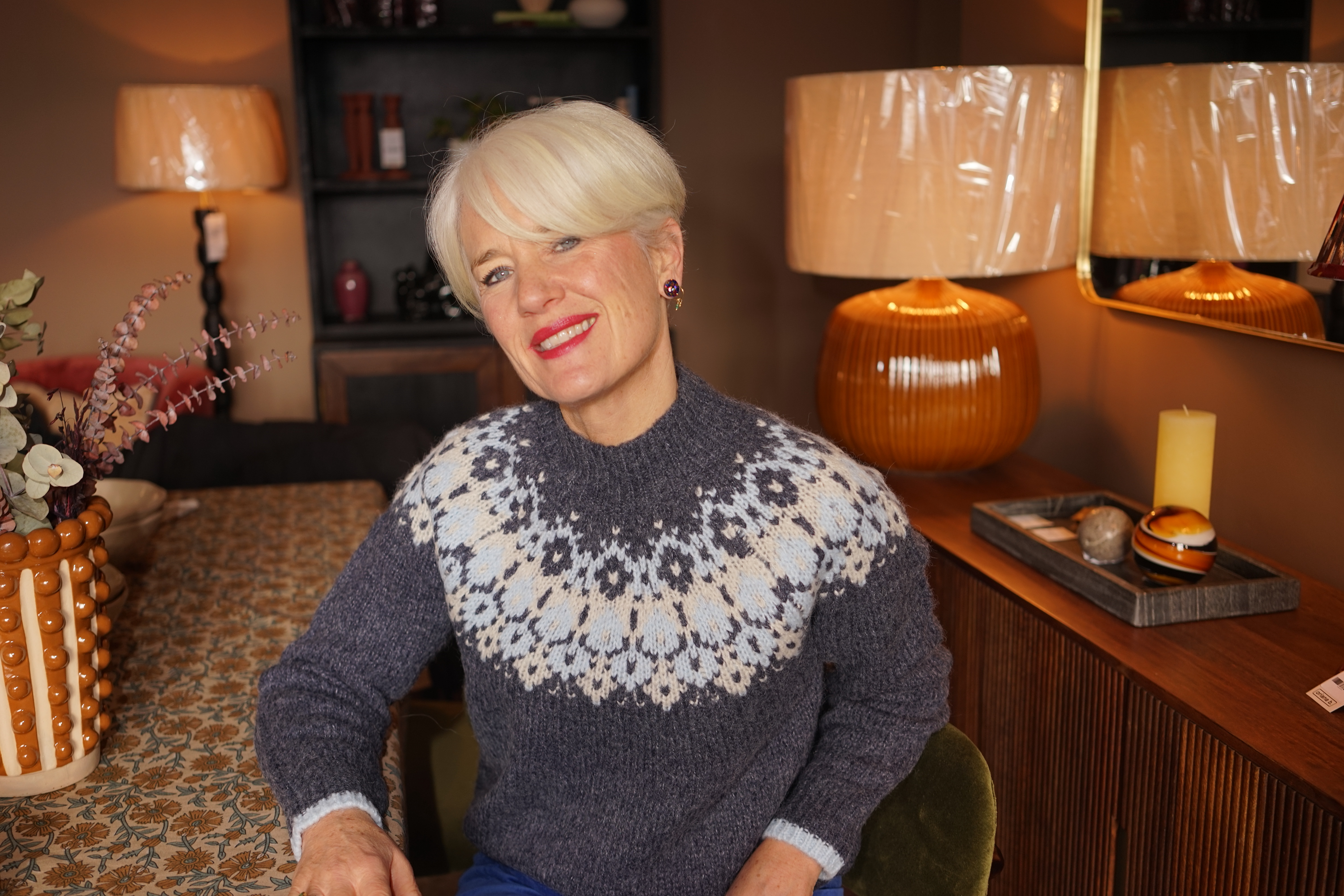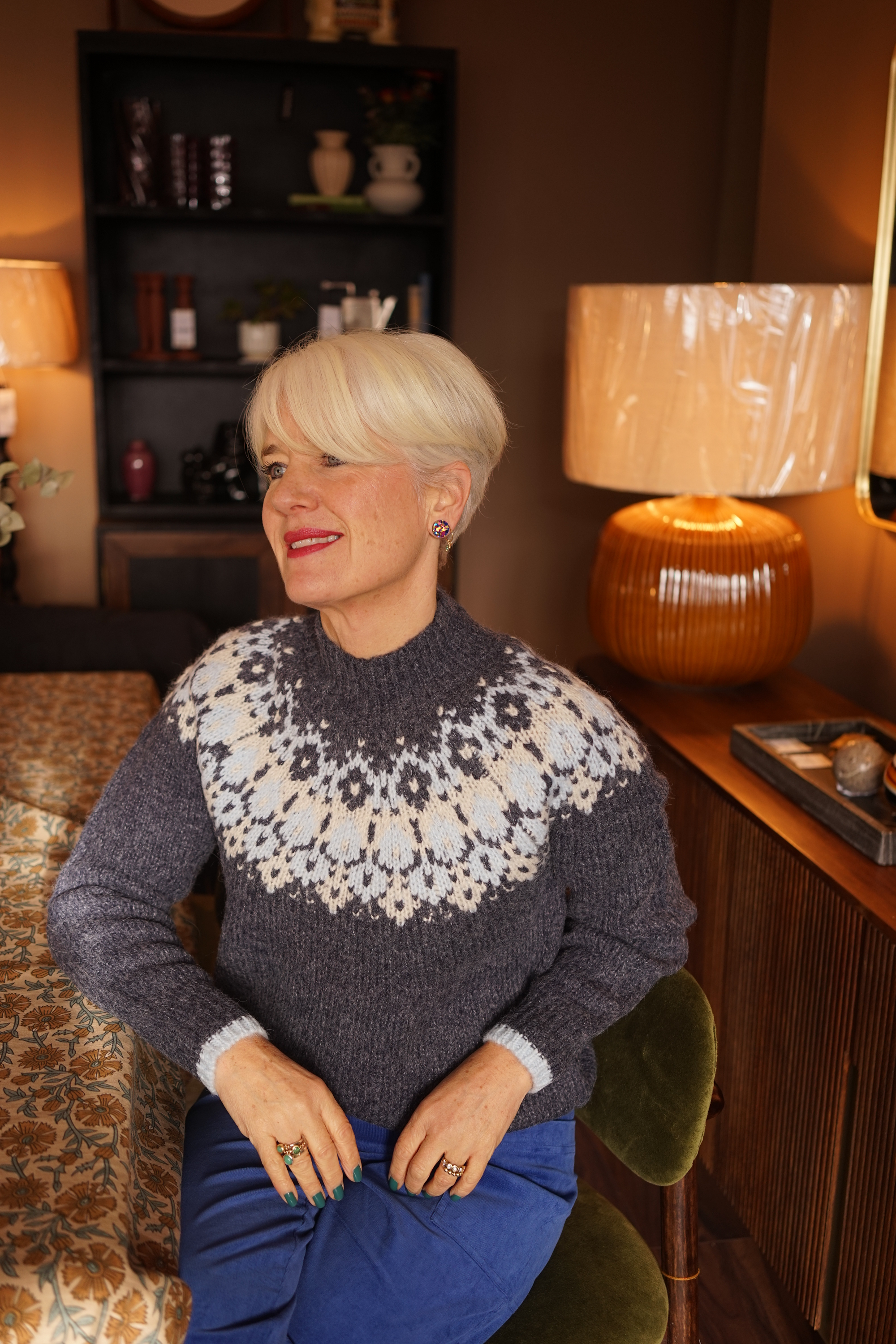 With hints of wool and alpaca, this winter-ready knit is soft, snug and full of seasonal charm. A high ribbed neckline and crochet-style pattern bring a festive feel, while pale blue edging adds a subtle pop. Medium-to-heavyweight, perfect for wrapping up and heading out.